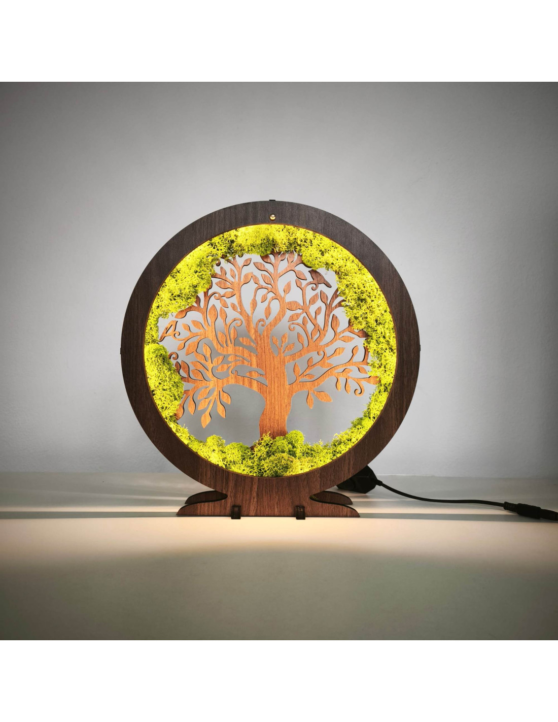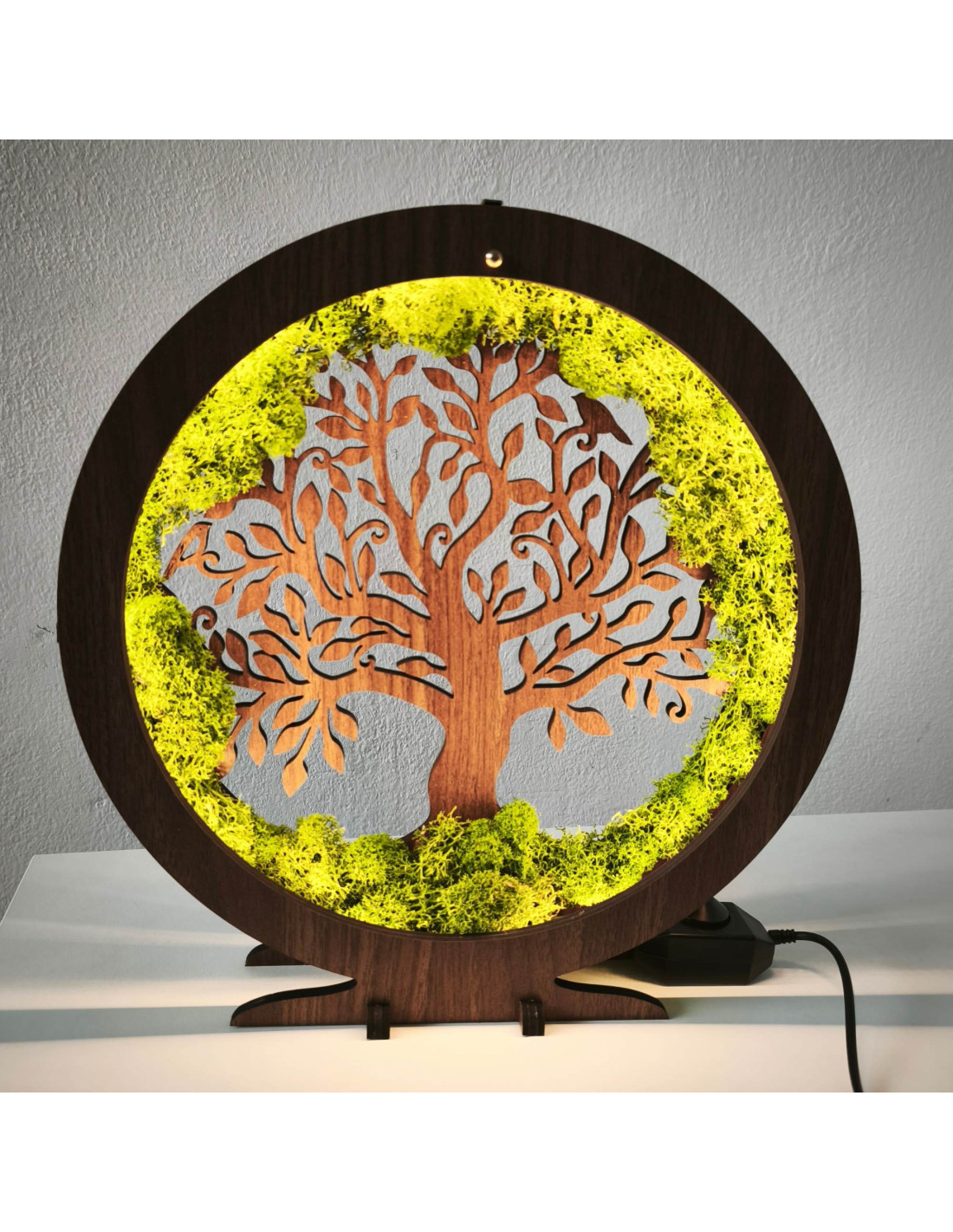 Die interne LED-Hintergrundbeleuchtung hebt die Details des Baumes hervor und erzeugt ein angenehmes, warmes Umgebungslicht .
