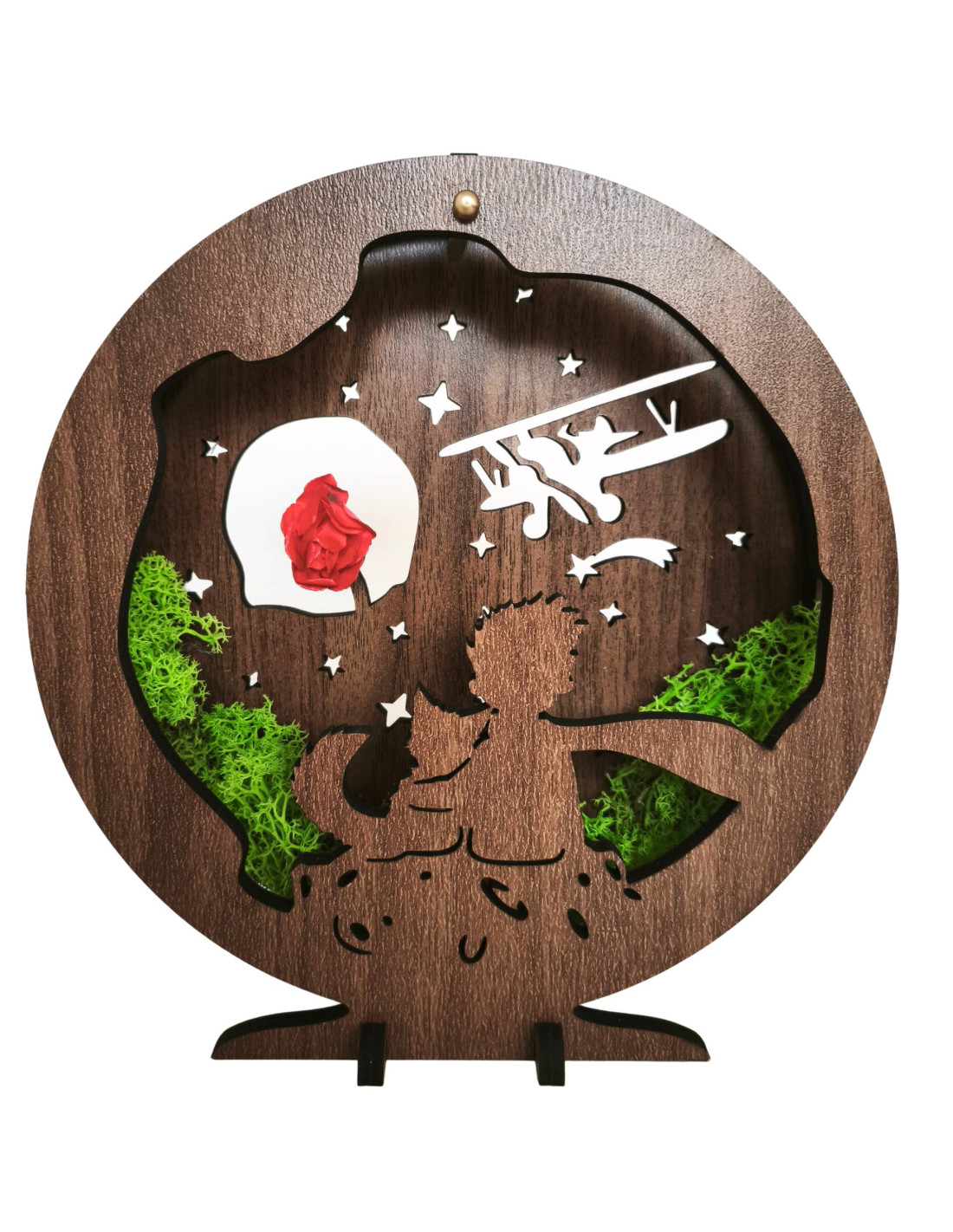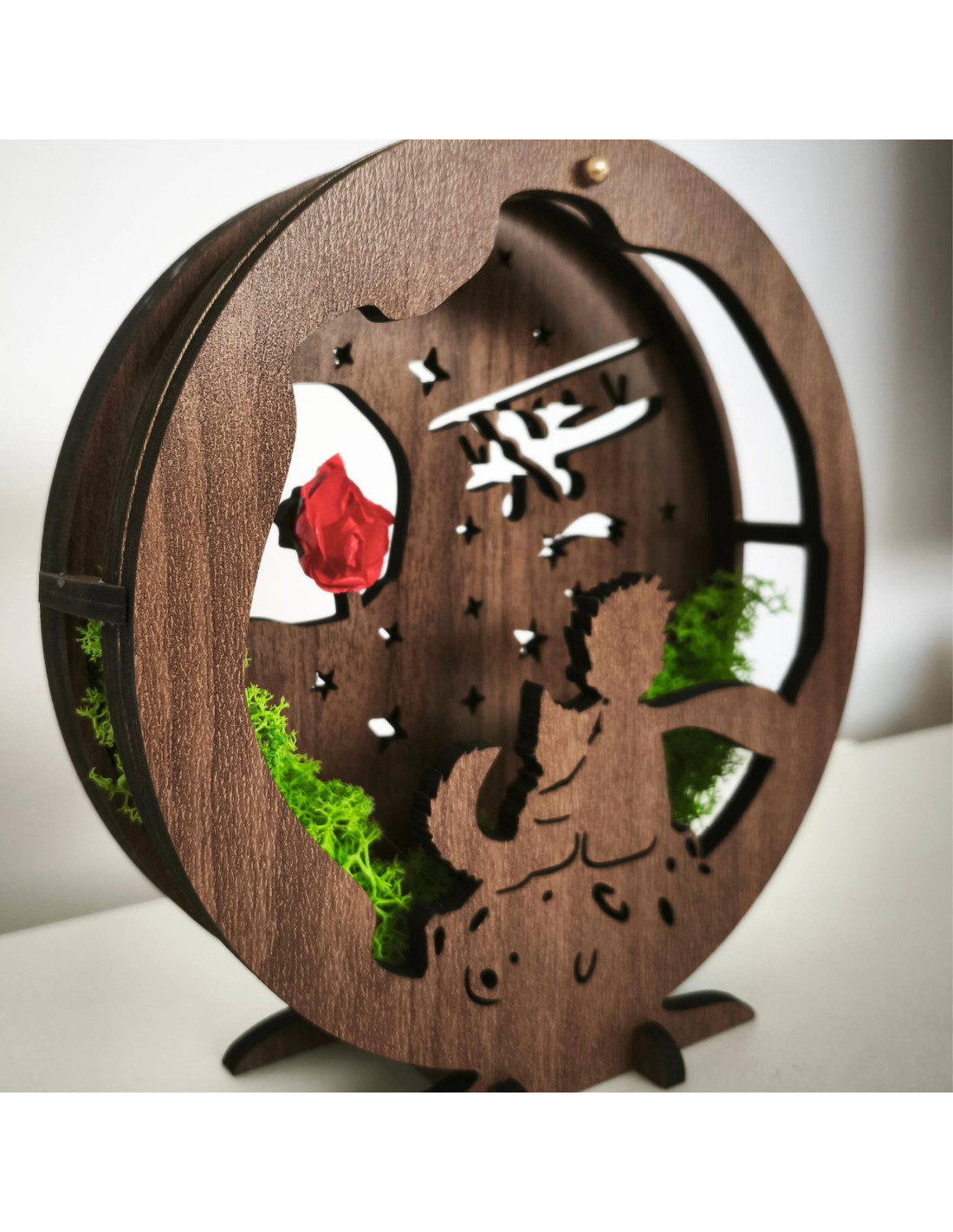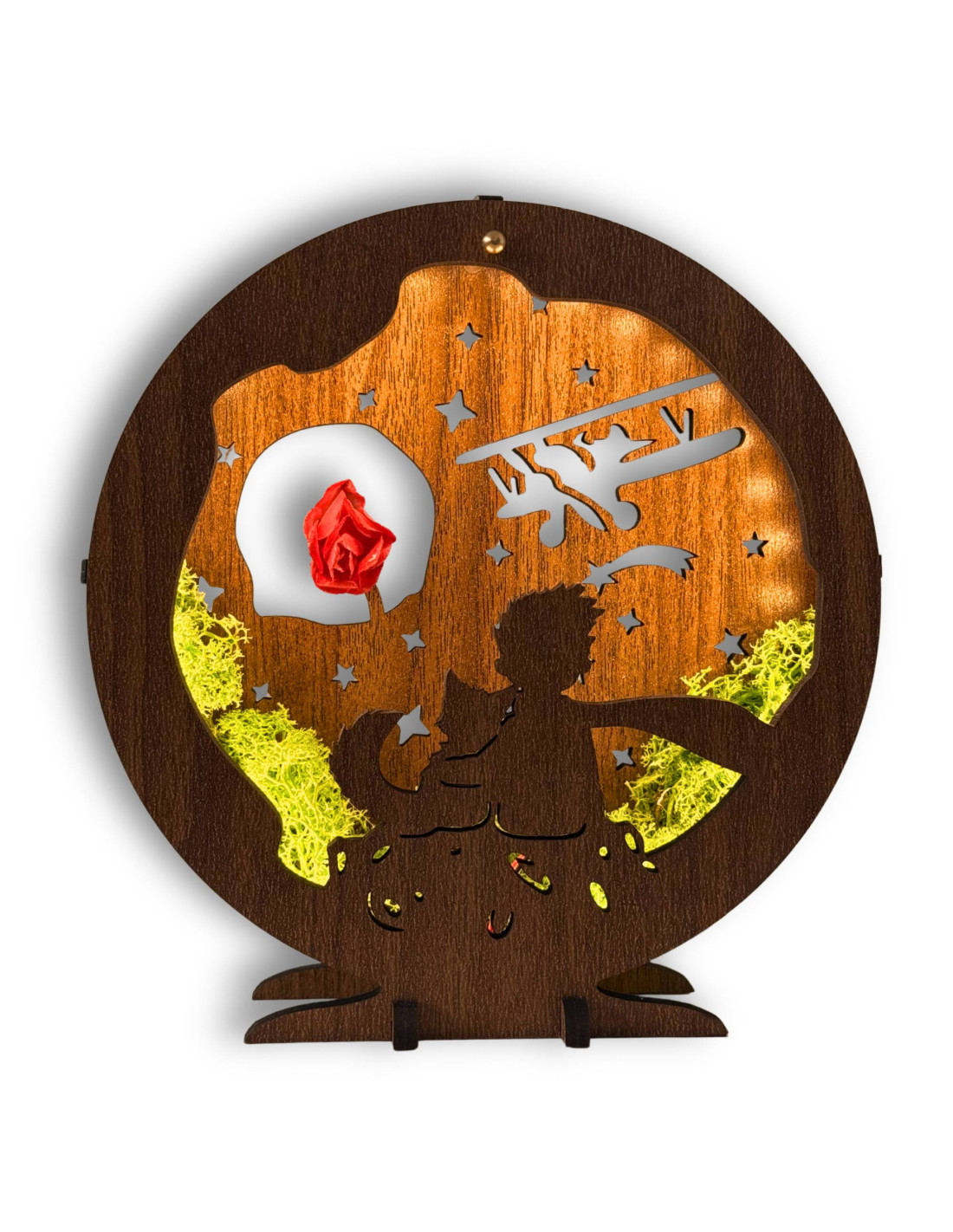 Diese dimmbare LED-Tischleuchte mit dem Motiv des Kleinen Prinzen ist eine einzigartige Kombination aus Märchen, natürlichen Elementen und moderner Beleuchtung.