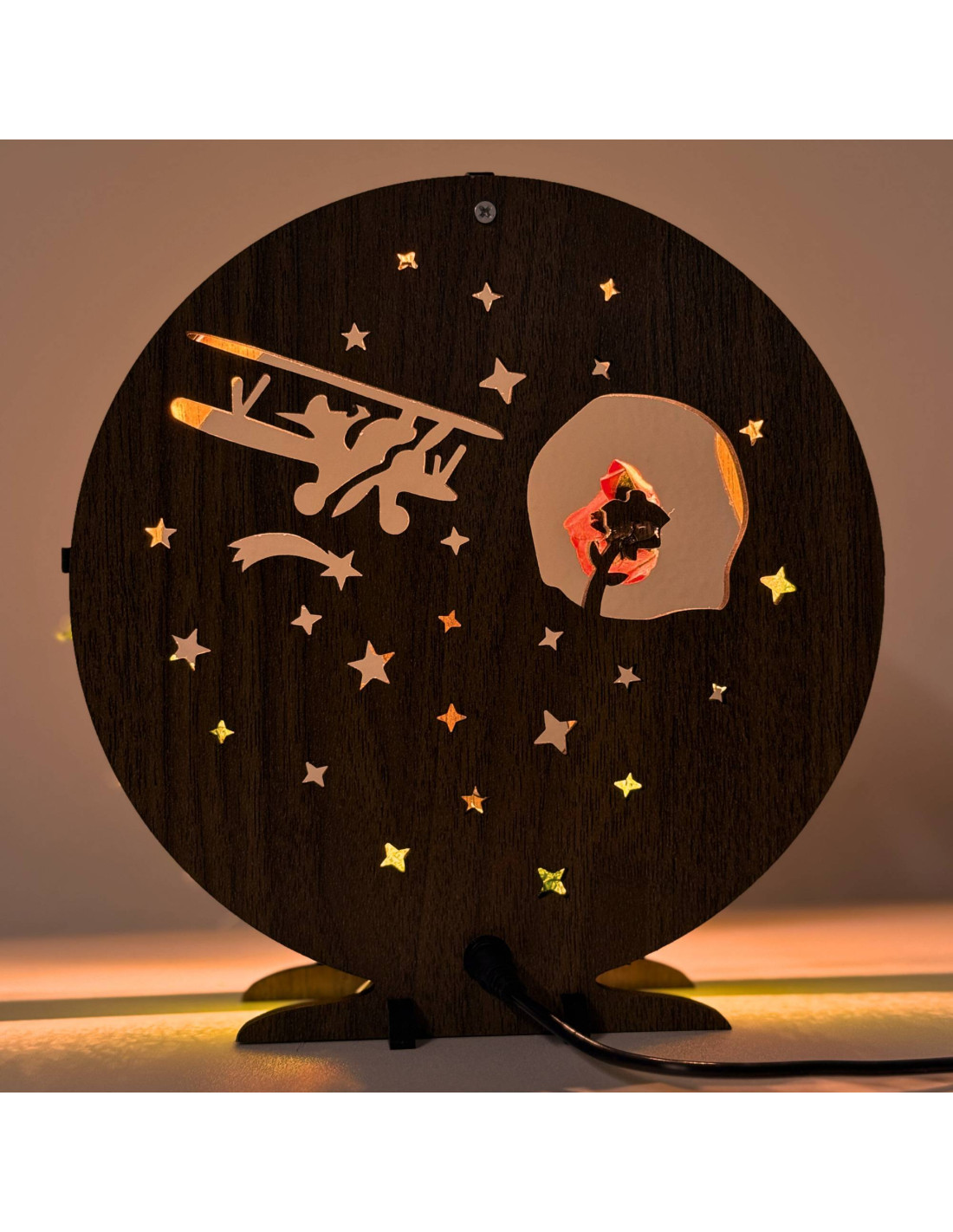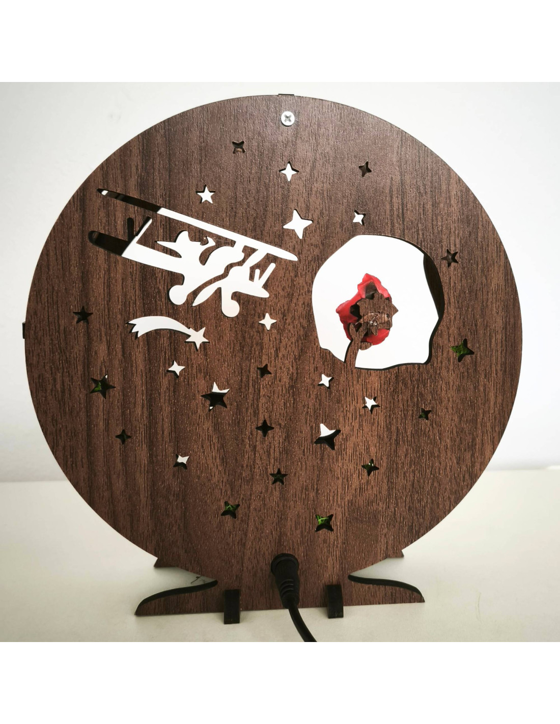 LED-Dekoration „Kleiner Prinz mit Flugzeug“ | Wenge-Walnuss