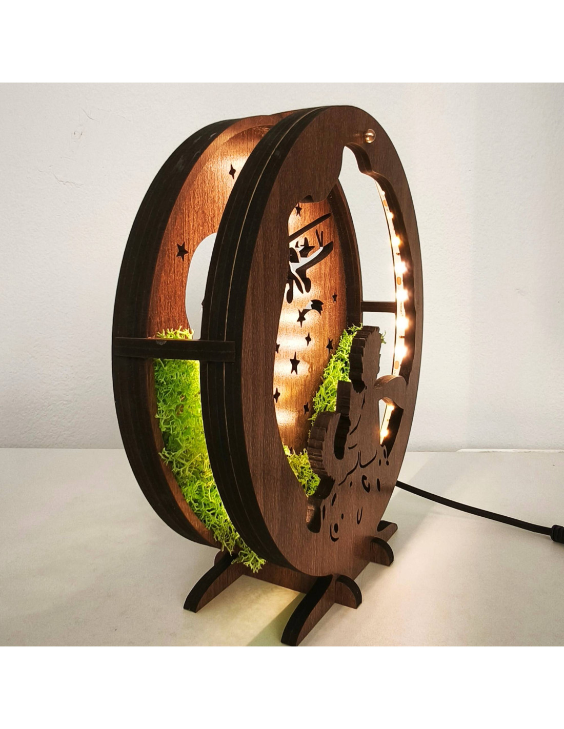 - Material: HDF-Faserplatte in Wenge-Walnuss-Farbe + stabilisiertes Moos