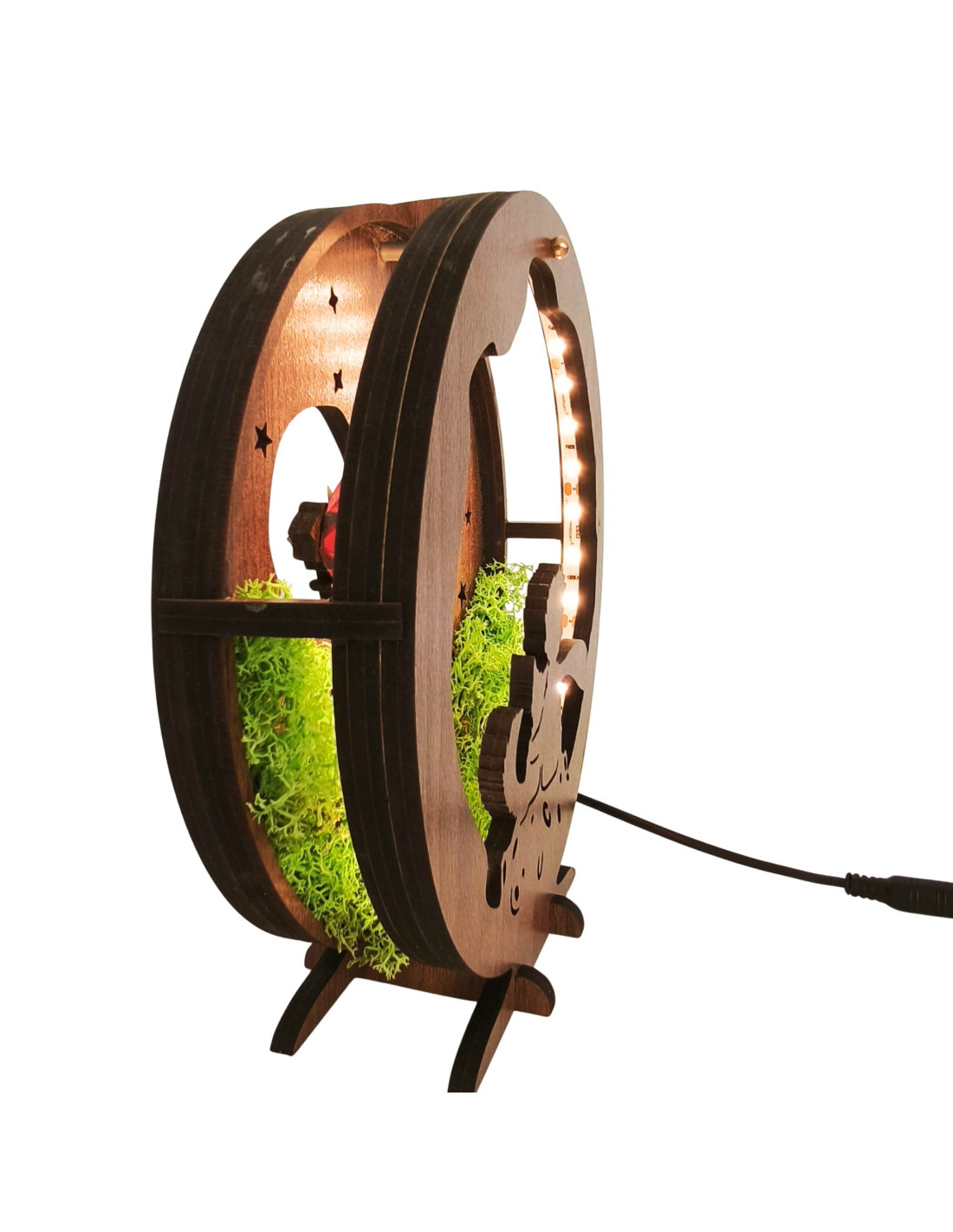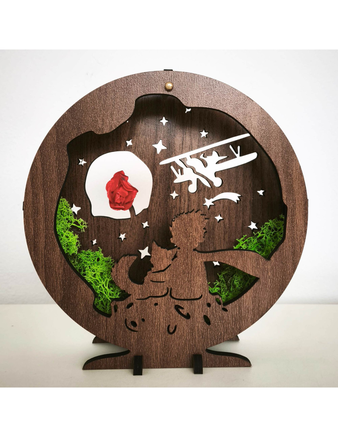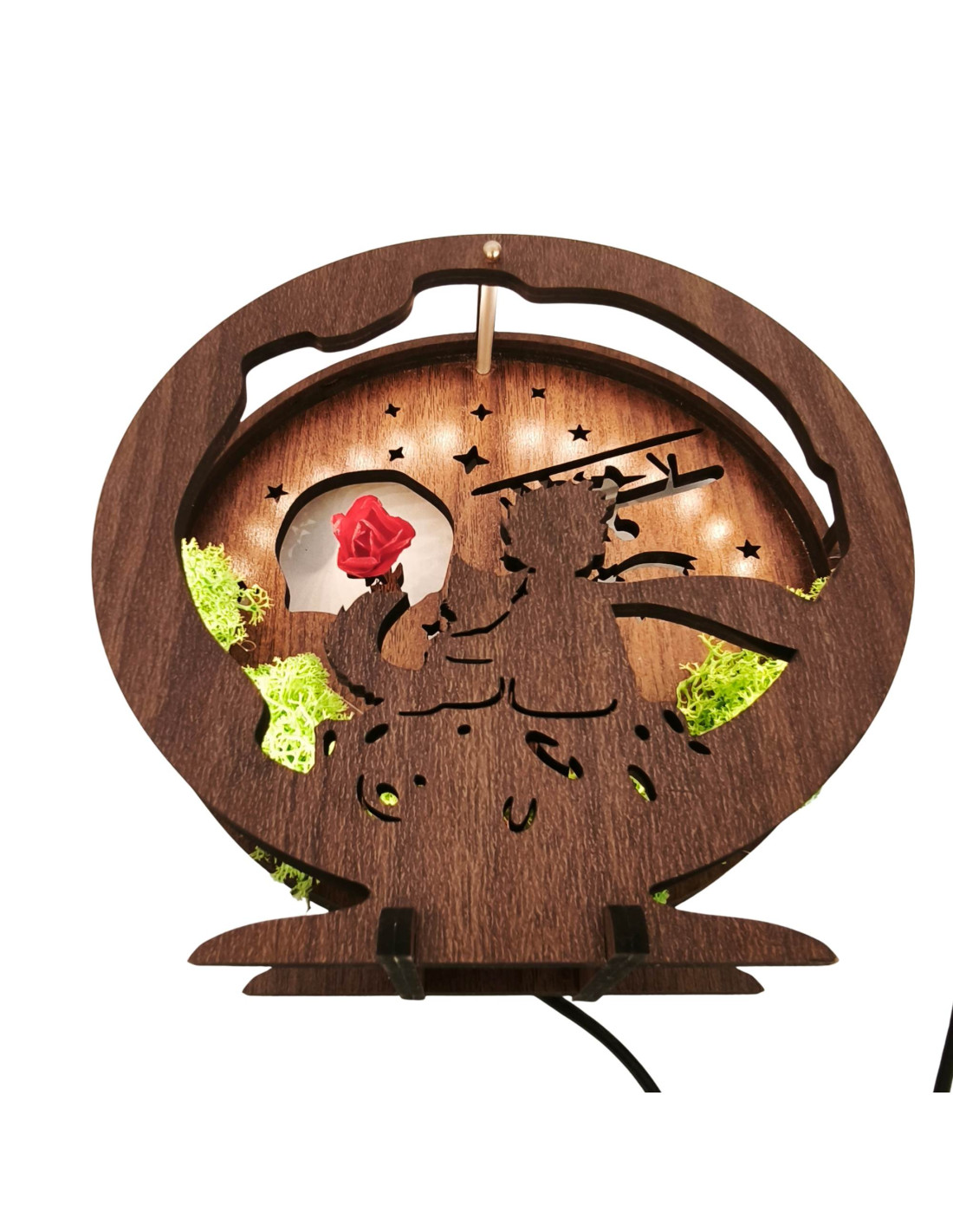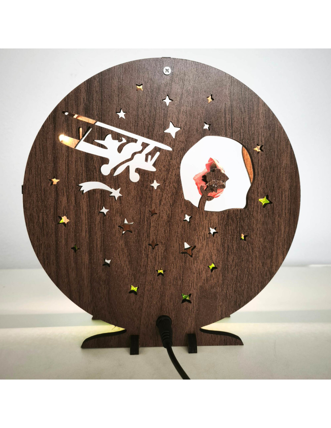 Diese dimmbare LED-Tischleuchte mit dem Motiv des Kleinen Prinzen ist eine einzigartige Kombination aus Märchen, natürlichen Elementen und moderner Beleuchtung.