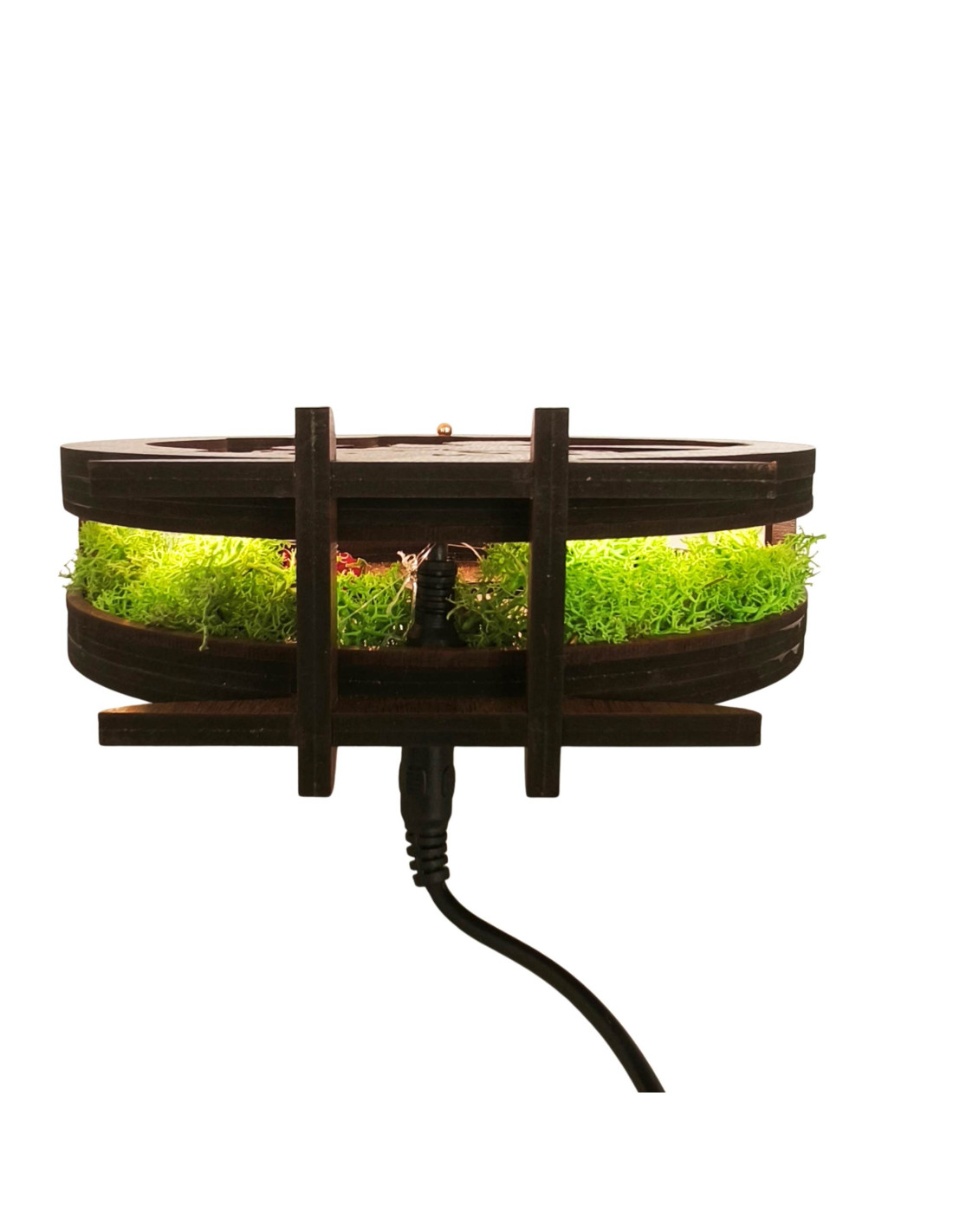 - Material: HDF-Faserplatte in Wenge-Walnuss-Farbe + stabilisiertes Moos