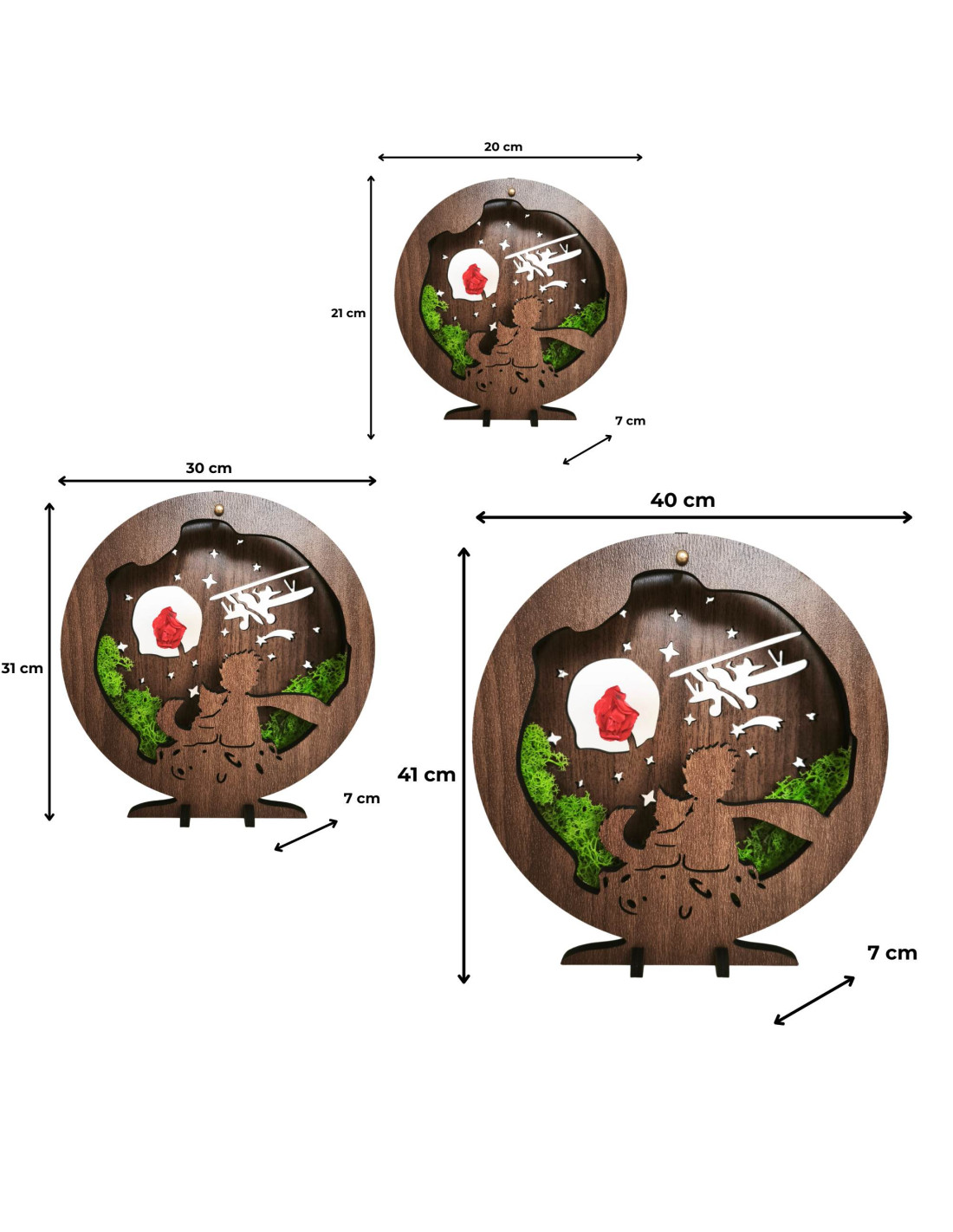 - Dicke der gesamten Dekoration inklusive Ständer: 7 cm