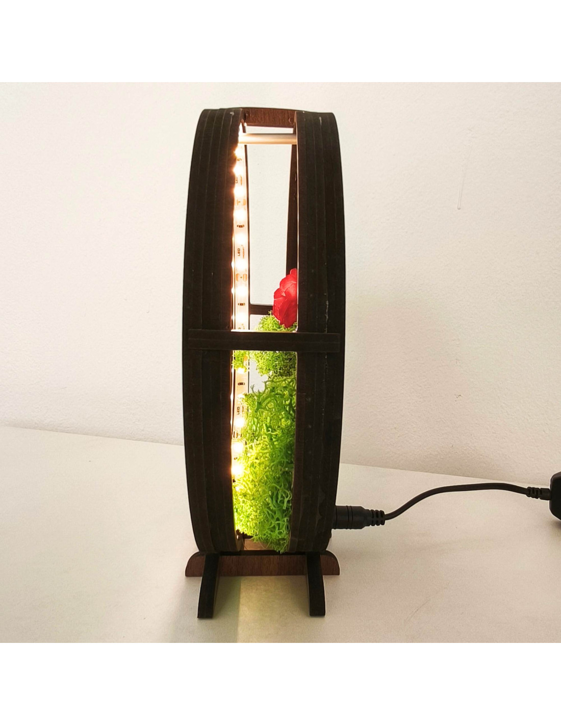 Das Design wird durch stabilisiertes Moos ergänzt, das sein natürliches Aussehen beibehält und keiner Pflege bedarf.