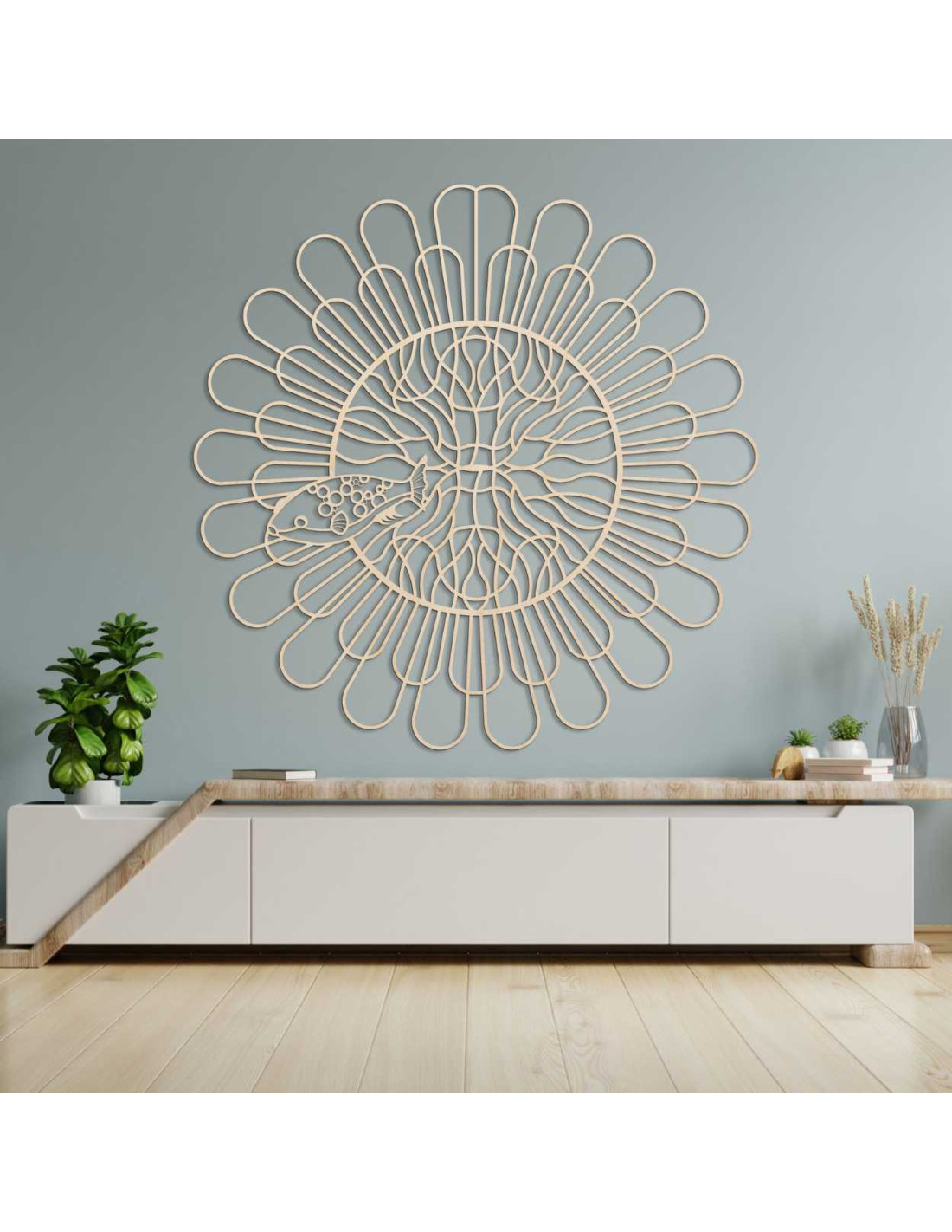 Designer-Holzsilhouette eines Mandalas mit maritimem Motiv an der Wand