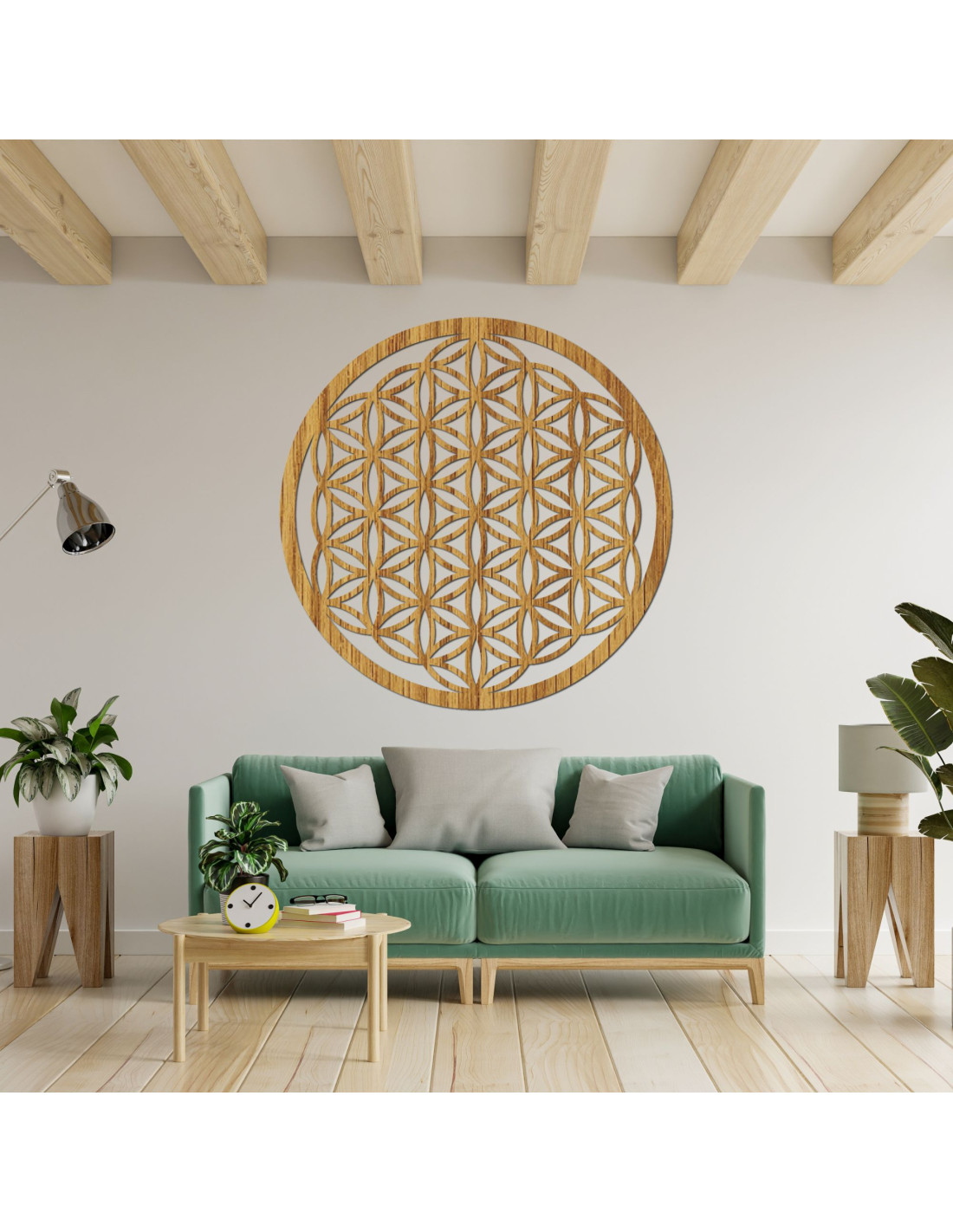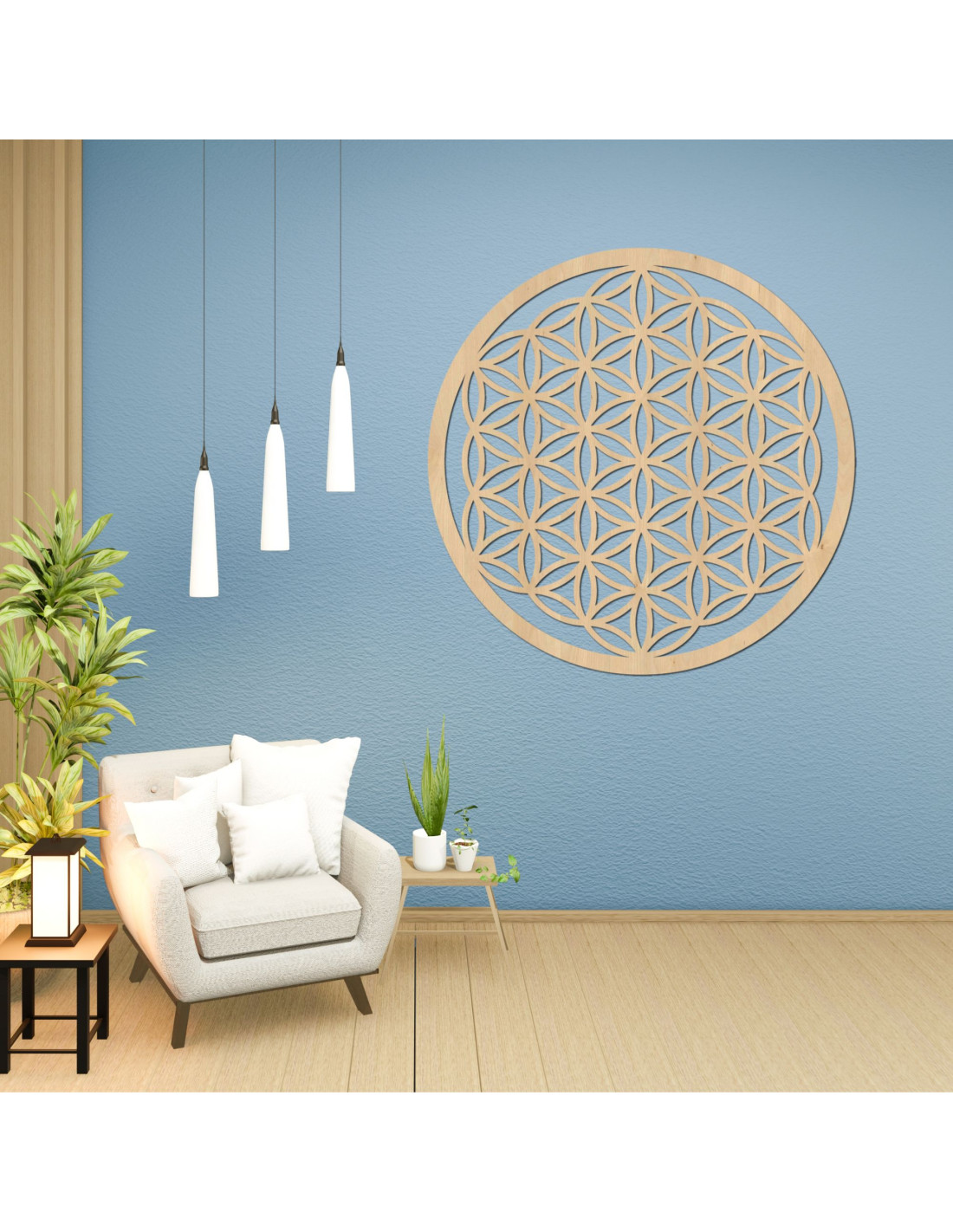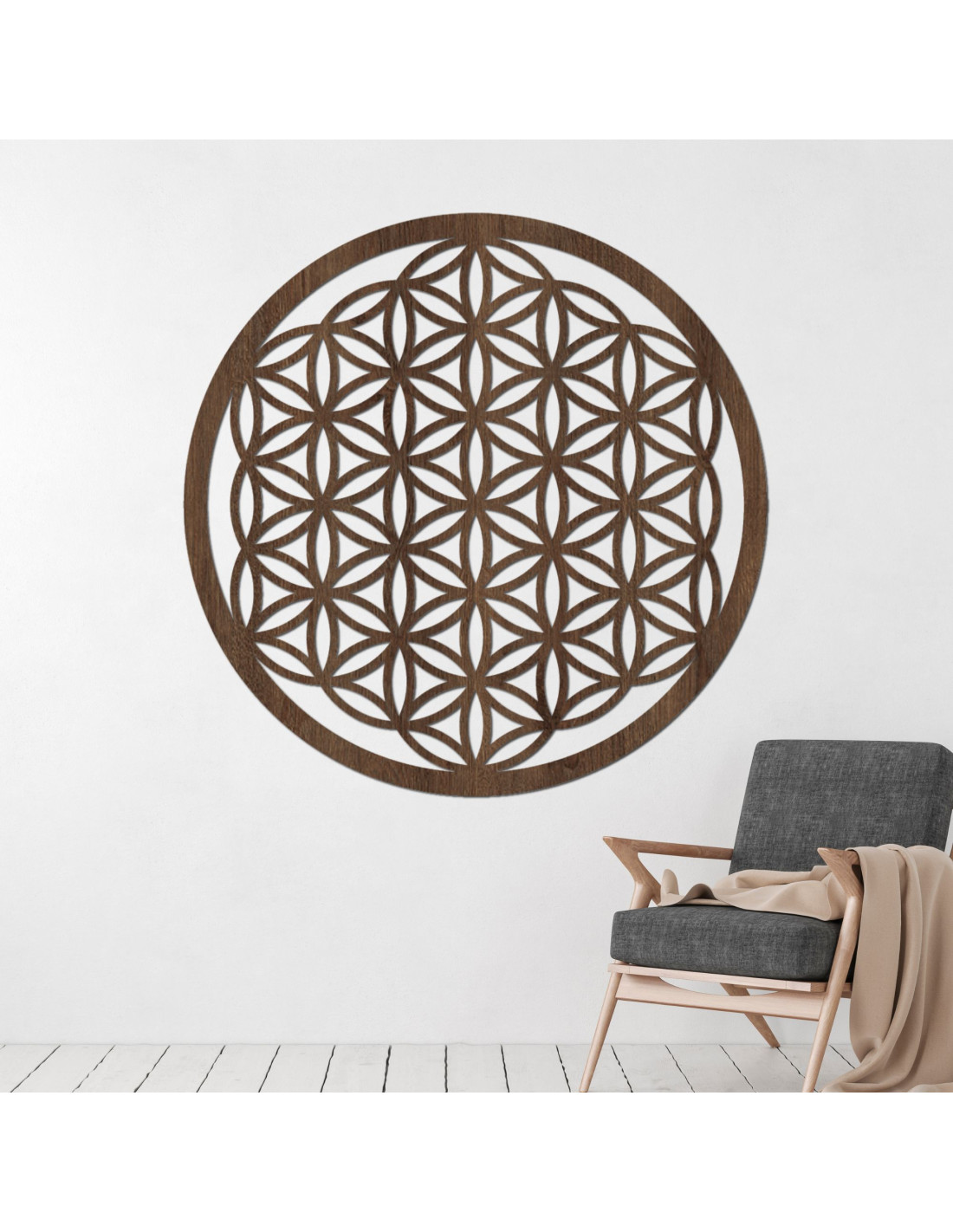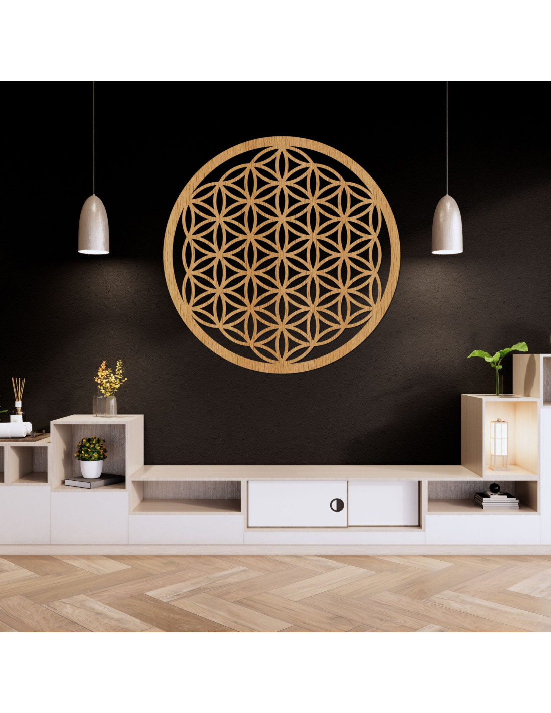Hölzernes Mandala an der Wand: Blume des Lebens – PERTON