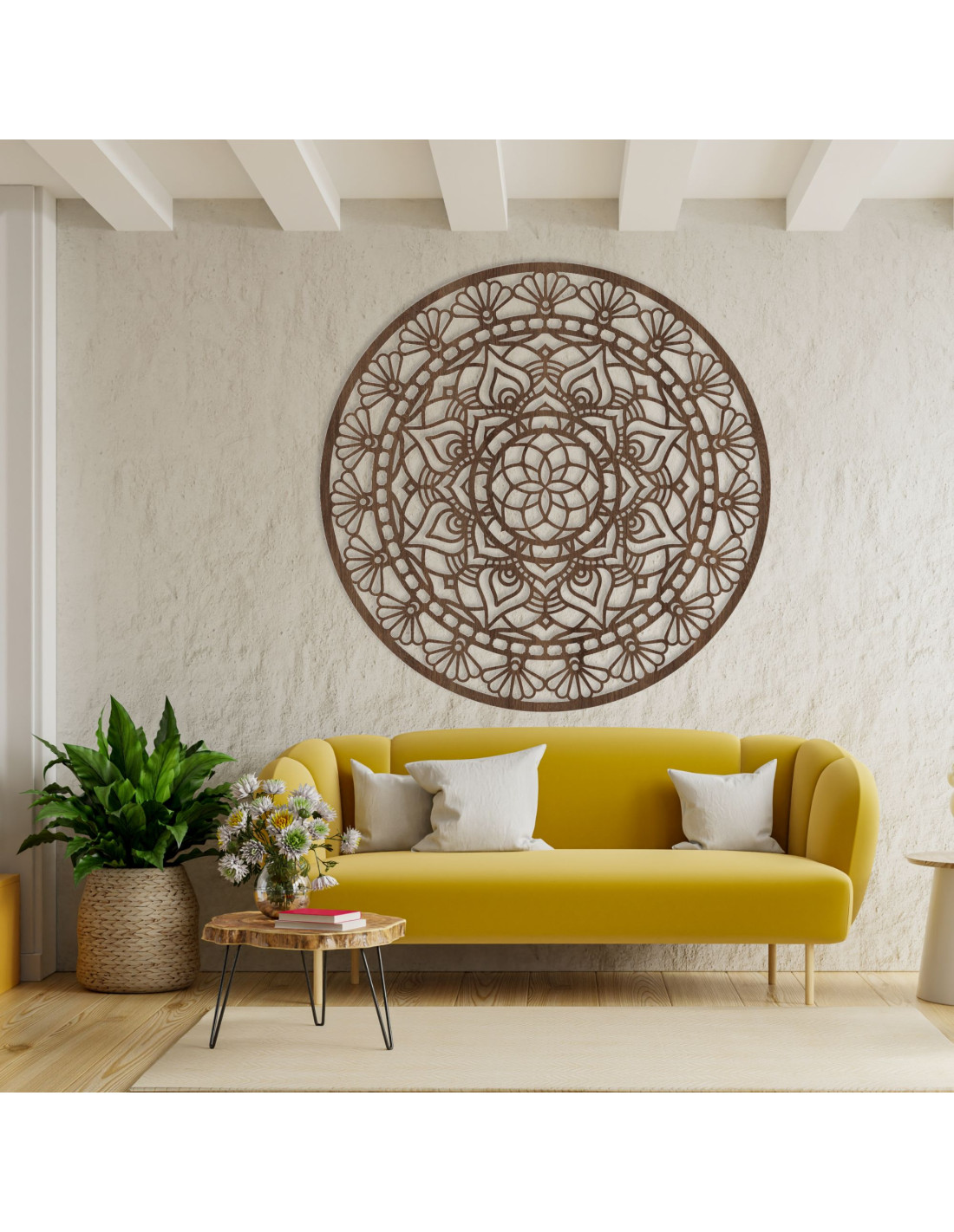 Das Design dieser Mandala ist von dem uralten Symbol der Blume des Lebens inspiriert, das in verschiedenen Kulturen zu finden ist und die grundlegenden Prinzipien des Universums und des Lebens repräsentiert. Es wird angenommen, dass es die Energie eines Raumes verbessern und inneren Frieden fördern kann.