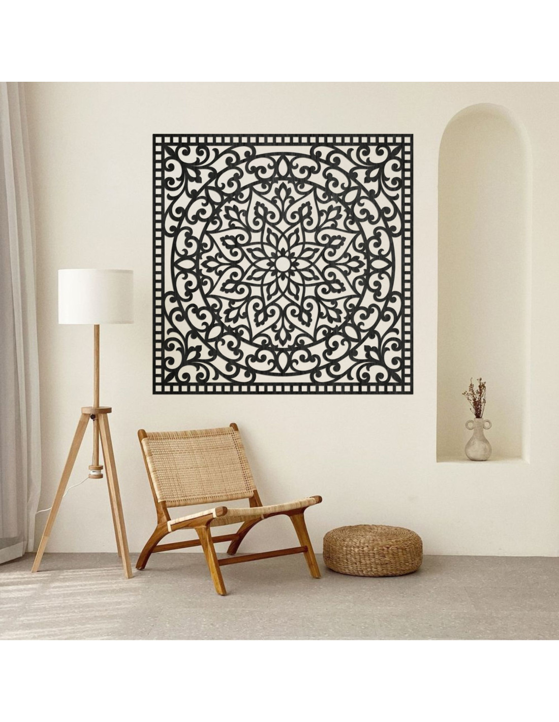Holzmandala an der Wand, quadratisch | SYRRENA