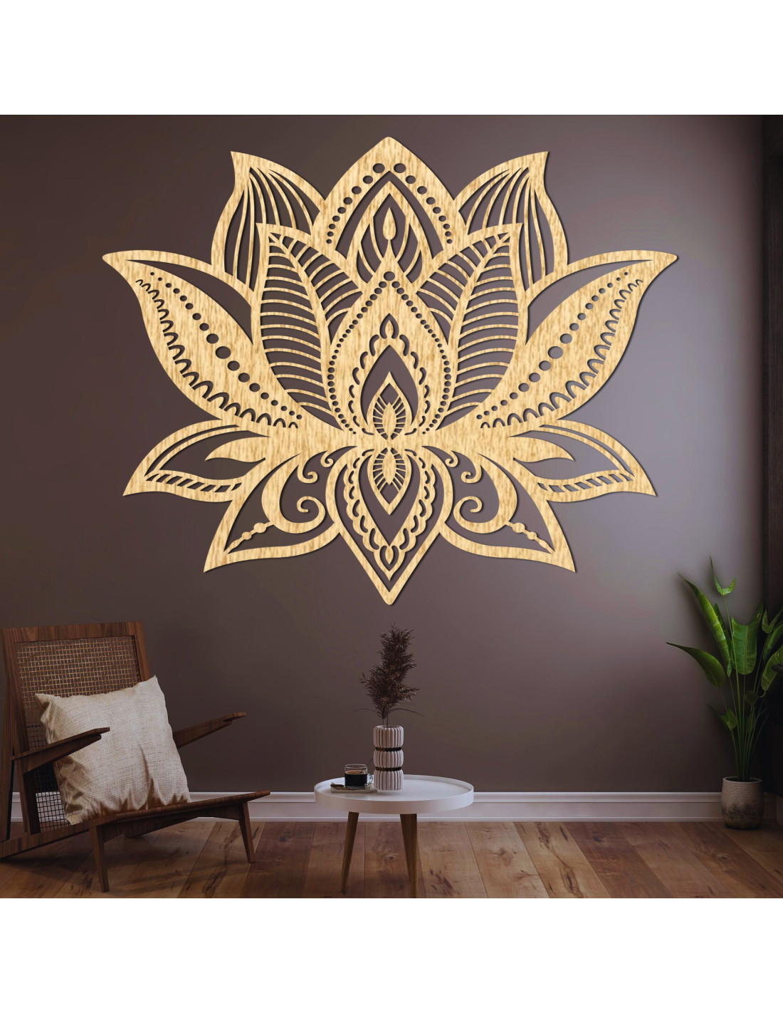 Die Lotusblume ist seit der Antike ein Symbol für Reinheit, Wiedergeburt und inneren Frieden. Dieses Wandbild aus Holz bringt Ausgeglichenheit, Ruhe und sanftes Licht in Ihr Zuhause und erfüllt den Raum mit positiver Energie.