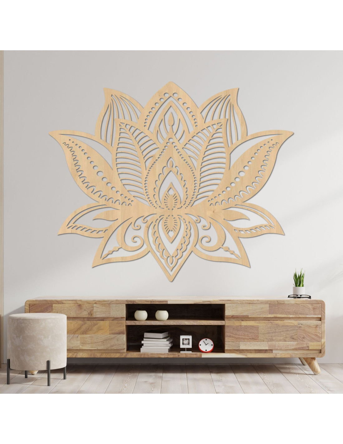 Die hölzerne Lotusblumendekoration vereint ästhetische Eleganz mit spiritueller Tiefe.