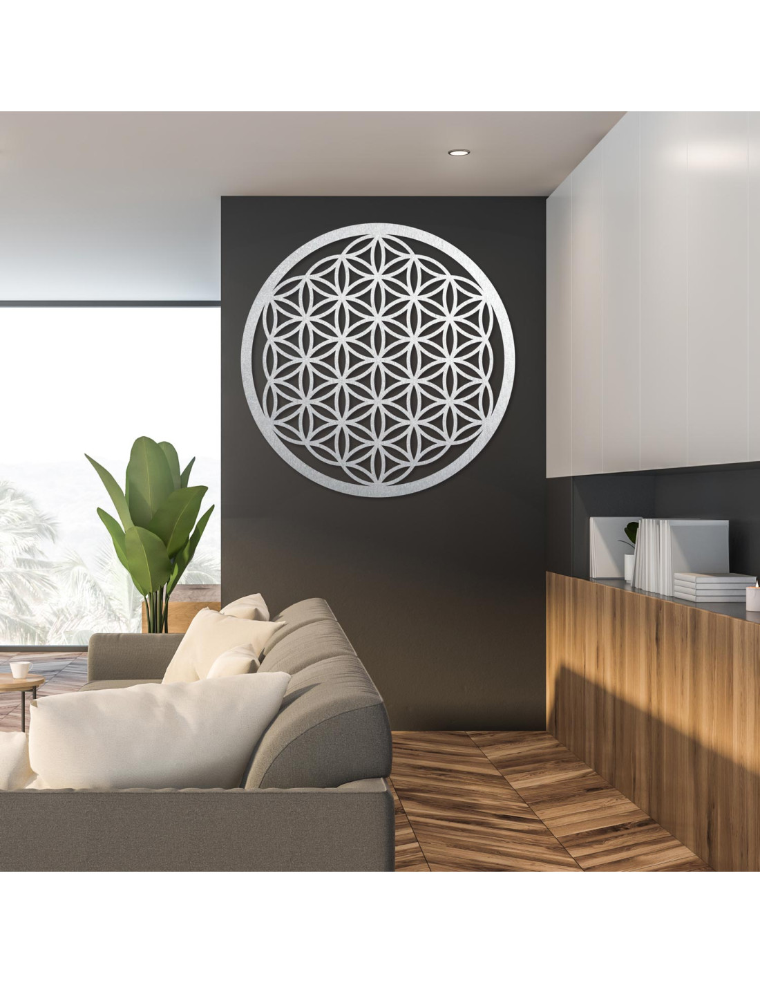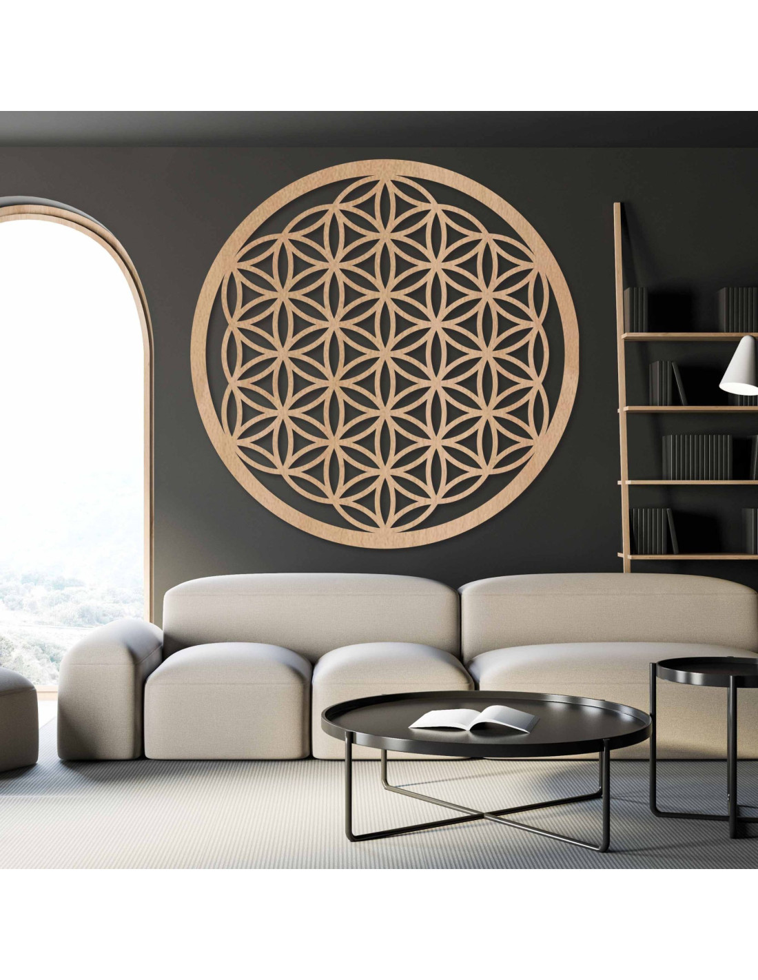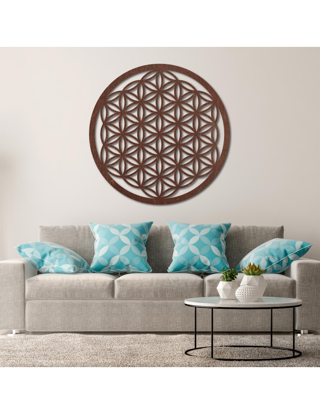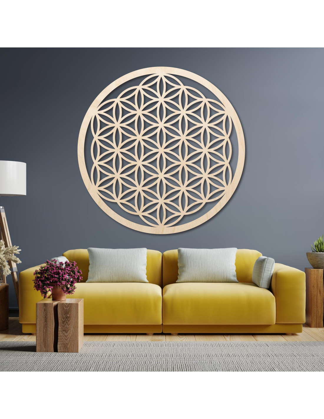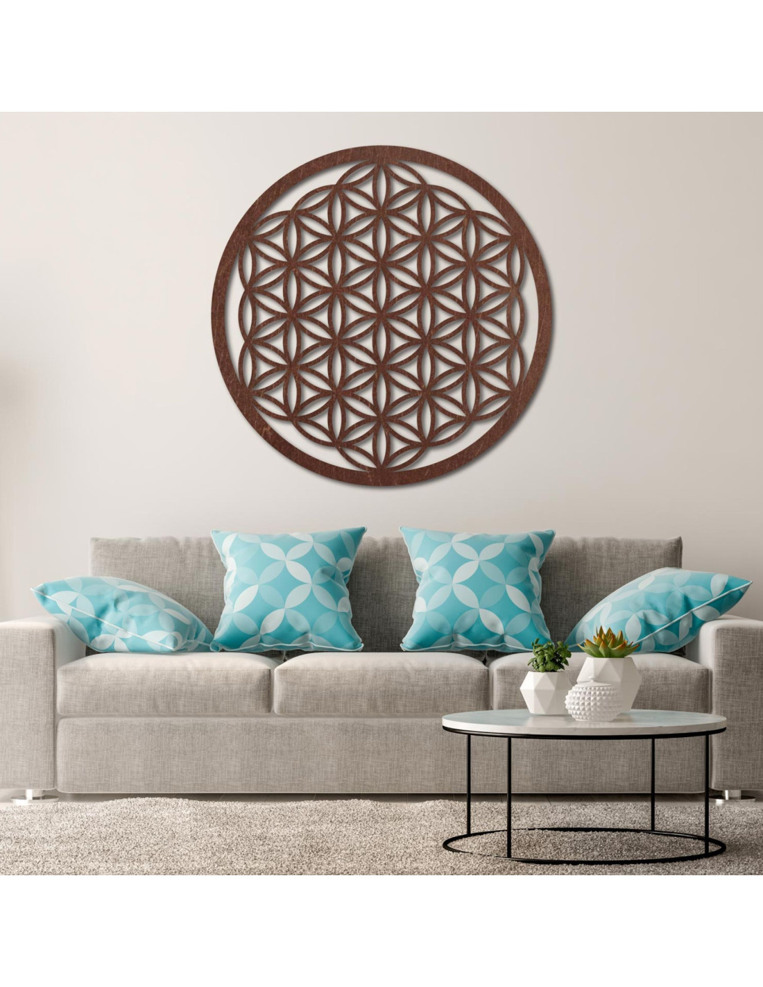 Wanddekoration aus Holz: Blume des Lebens – Mandala mit heiliger Geometrie | FOGO