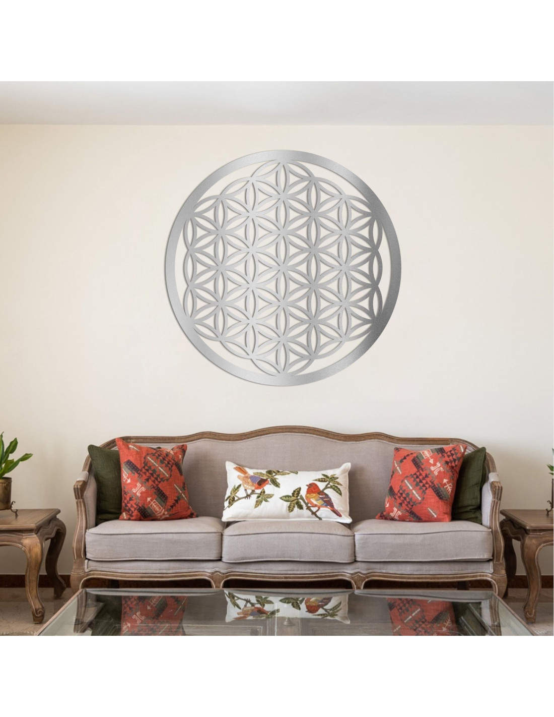 Dank seines einzigartigen Musters aus miteinander verbundenen Kreisen erzeugt es ein beeindruckendes Bild, das inneren Frieden, positive Energie und Ausgeglichenheit in Ihrem Raum fördert .