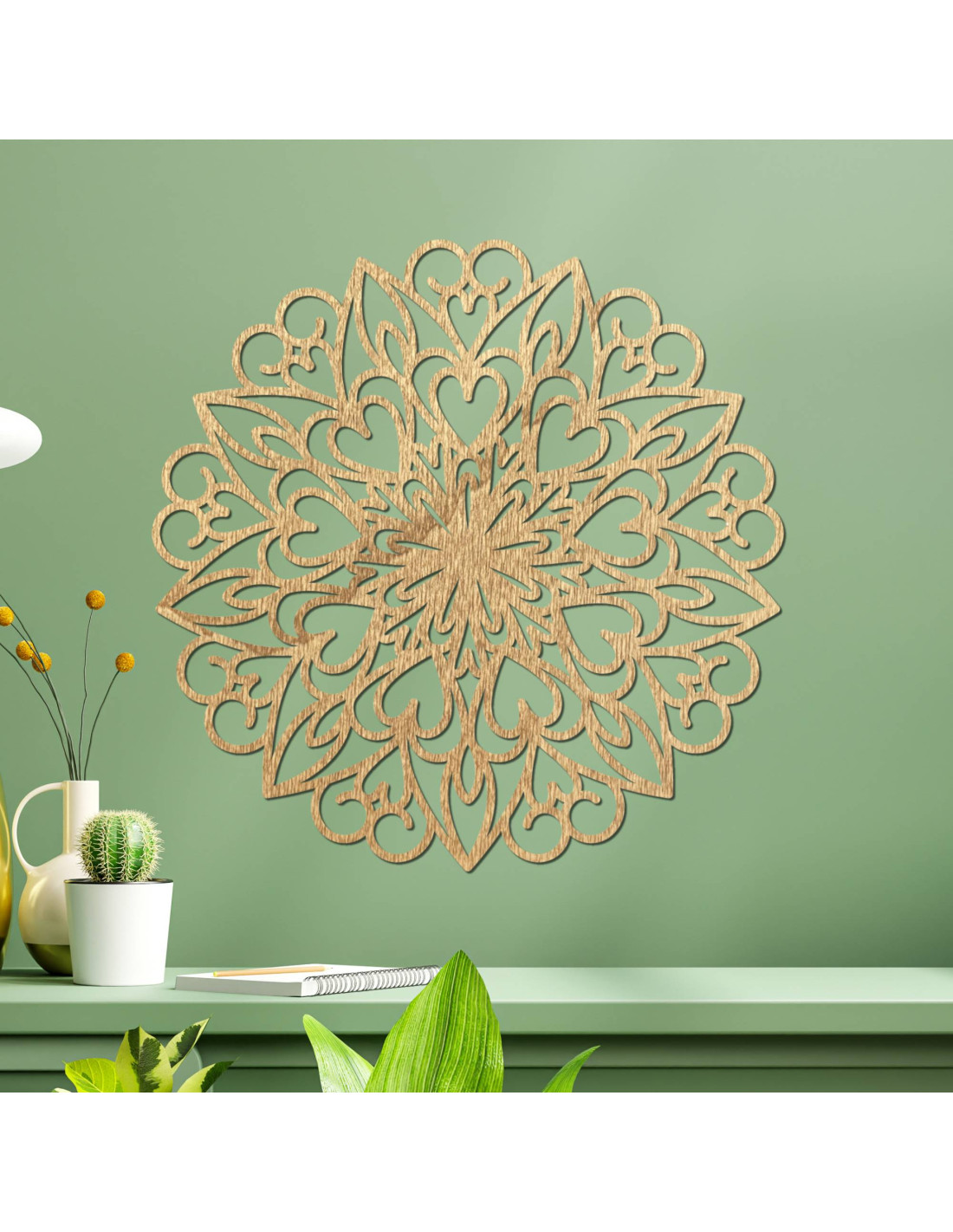 Mandala ist ein Symbol für Liebe und Harmonie in einem Holzdesign.