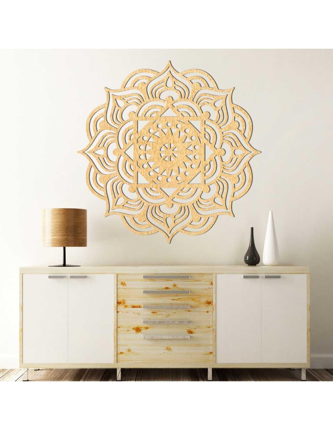 Wanddekoration aus Holz: Mandalas. Ihr Design, das Ausgewogenheit und positive Energie zum Ausdruck bringt, vereint die natürliche Schönheit des Holzes mit präziser Handwerkskunst.