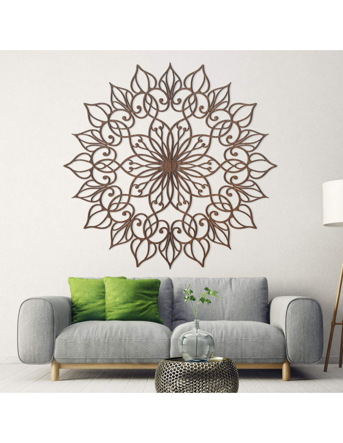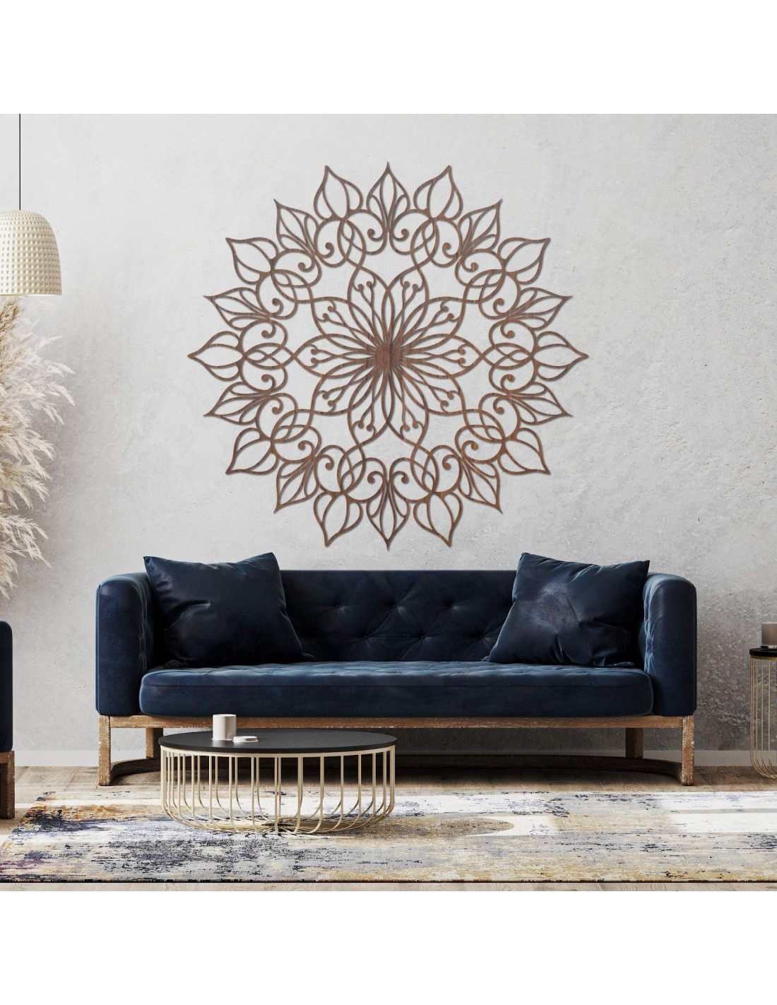 Das Mandala hat eine harmonische Wirkung und schafft eine ruhige, ausgeglichene Atmosphäre , ideal für moderne und minimalistische Räume.