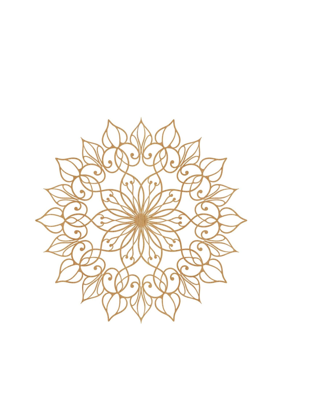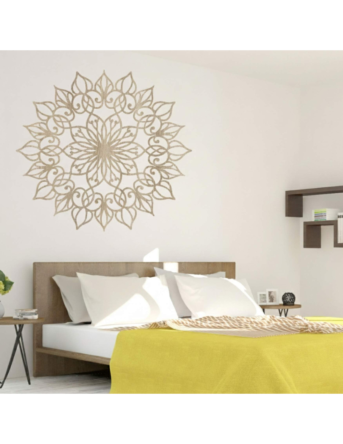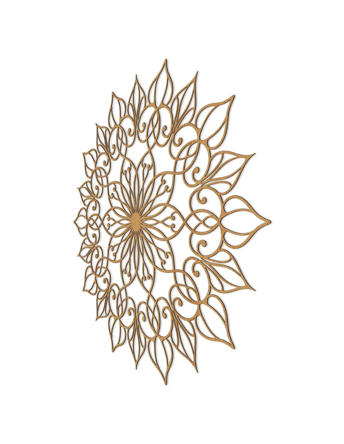 Diese einzigartige Wanddekoration zeigt das Mandala der Blume des Lebens mit einem präzise gearbeiteten, detailreichen Muster. Der goldene Farbton verleiht dem Raum eine luxuriöse, warme und harmonische Atmosphäre und macht sie zu einem unverwechselbaren Gestaltungselement in jedem Interieur.