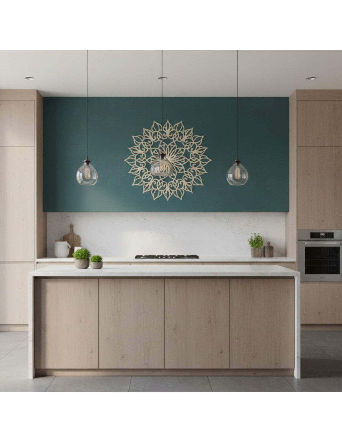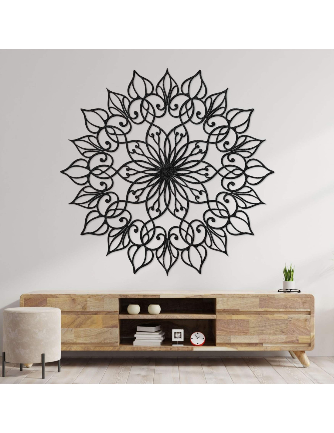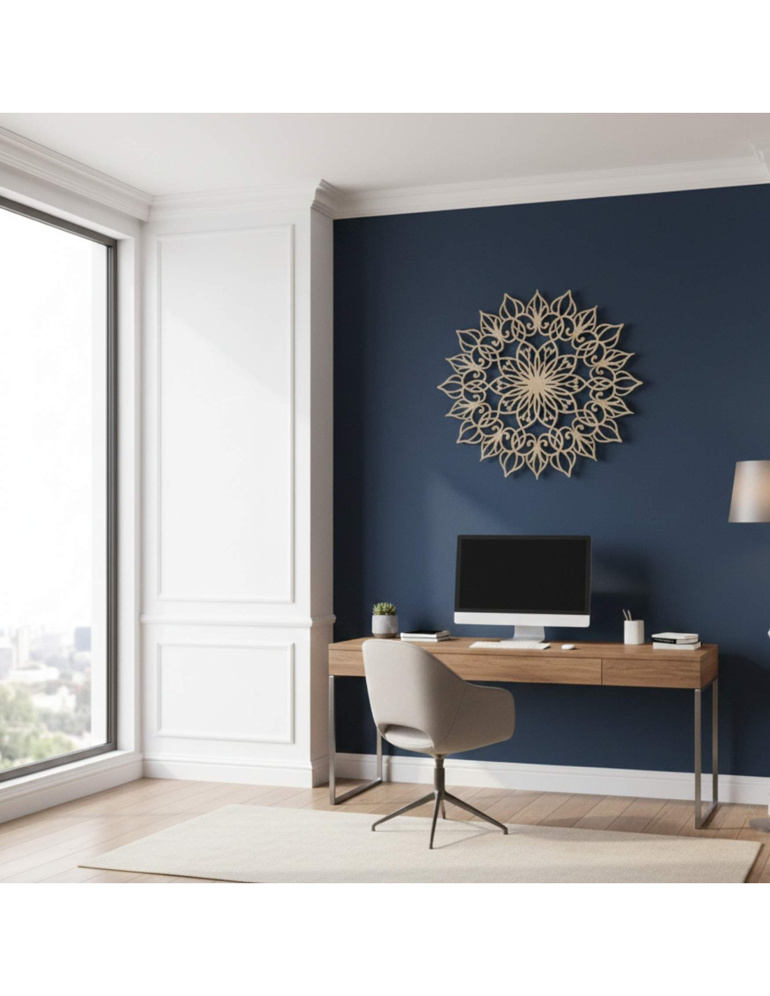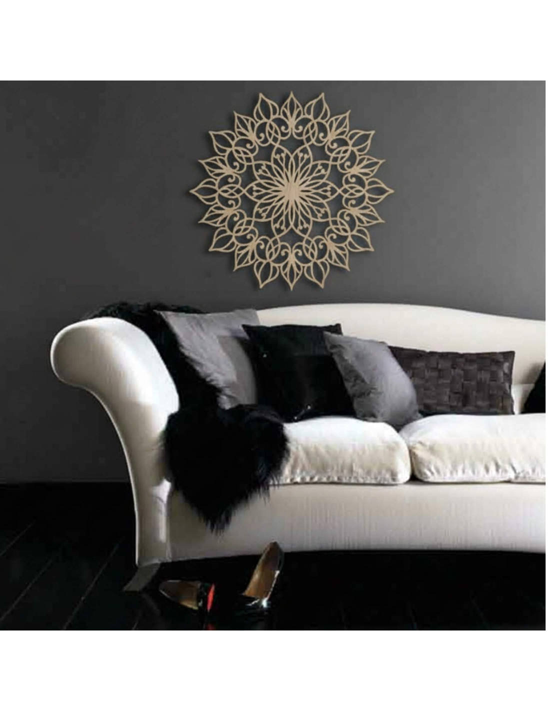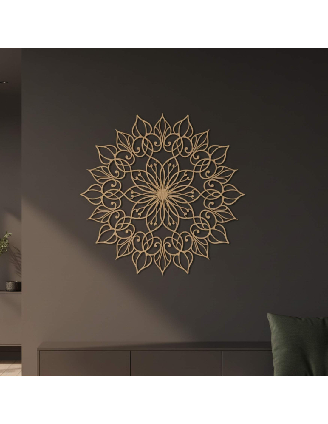 Das Mandala hat eine harmonische Wirkung und schafft eine ruhige, ausgeglichene Atmosphäre , ideal für moderne und minimalistische Räume.