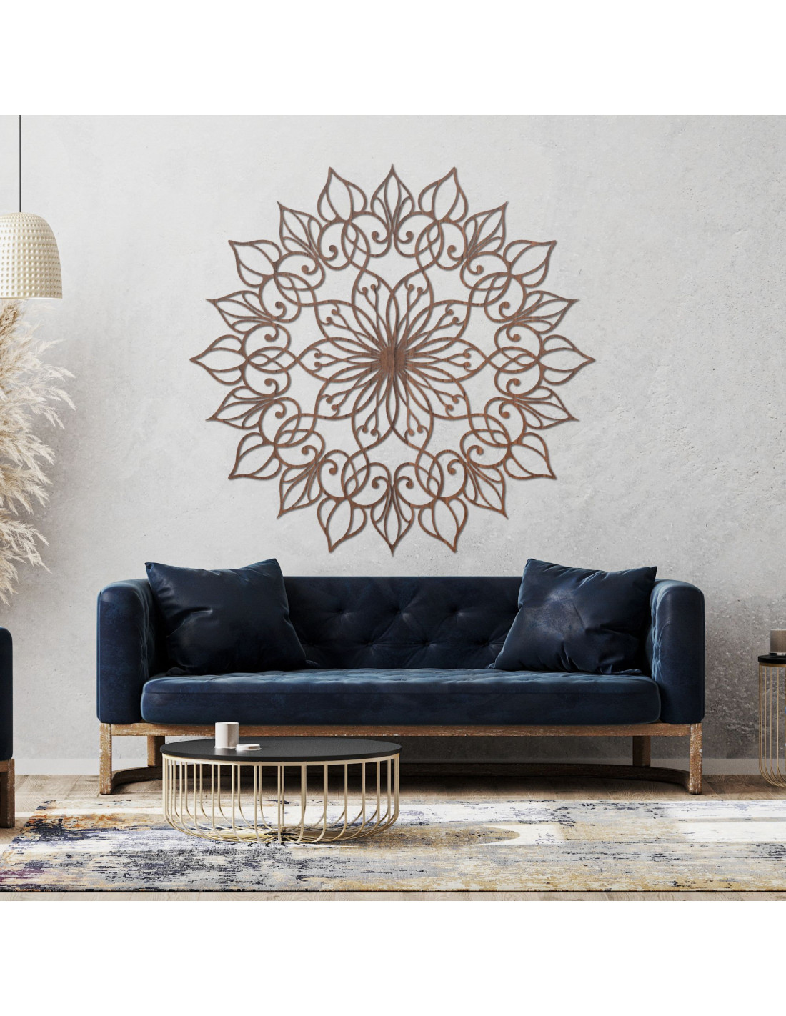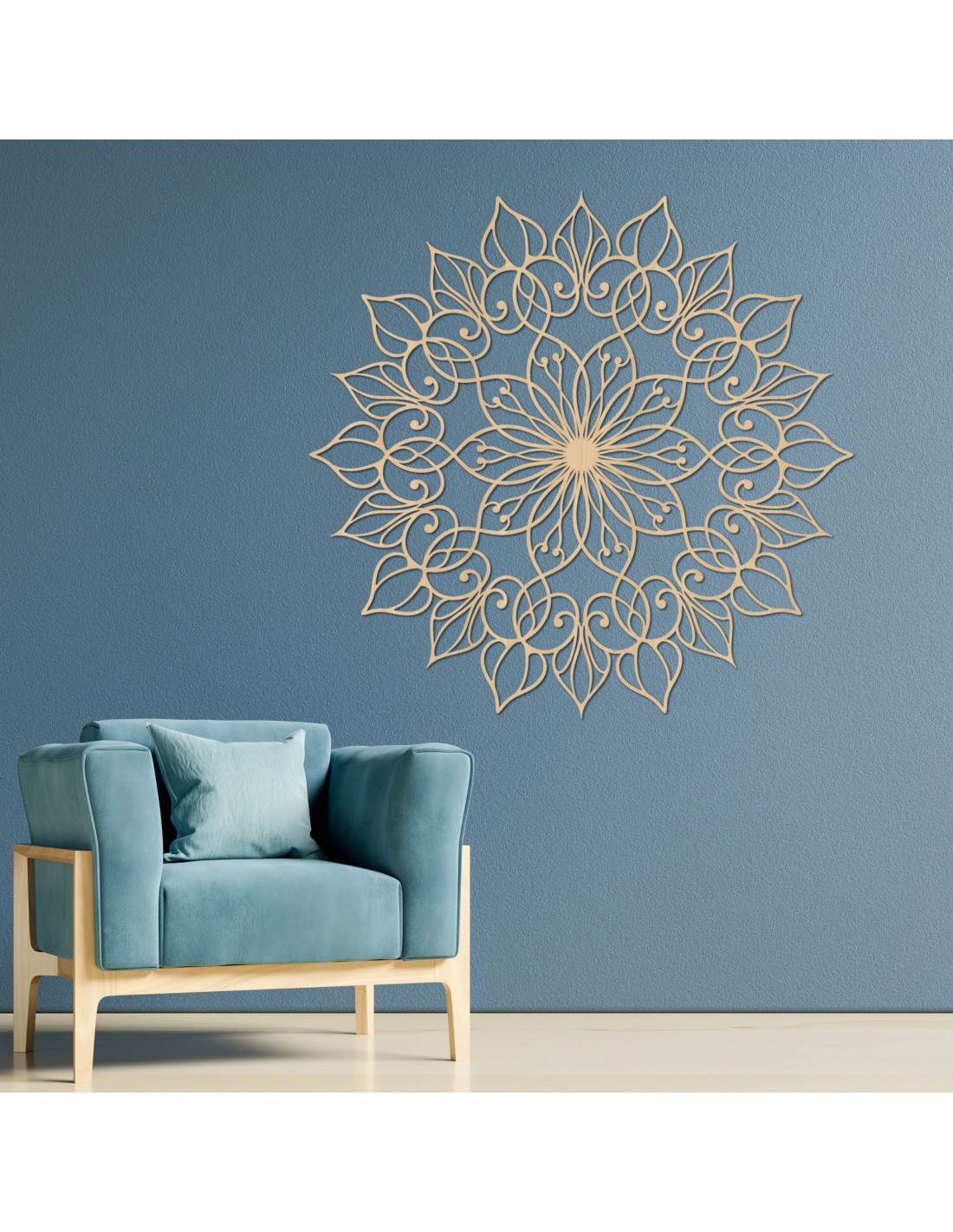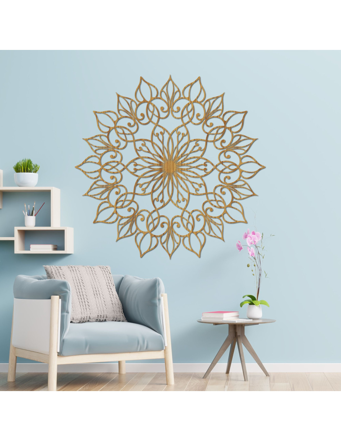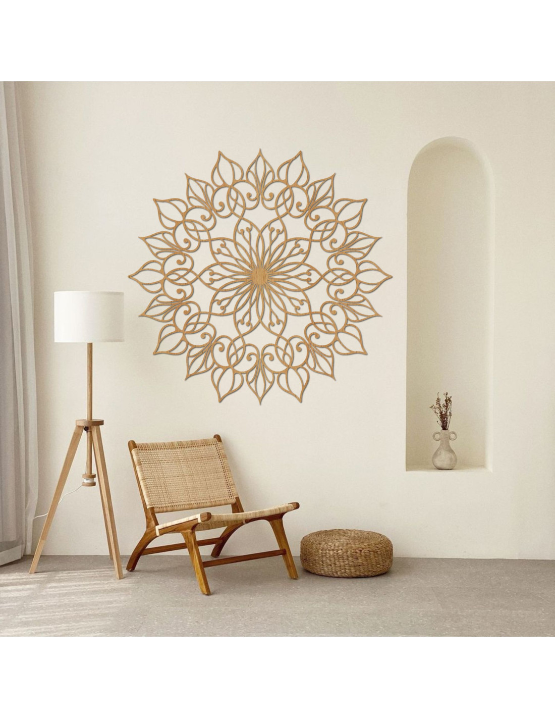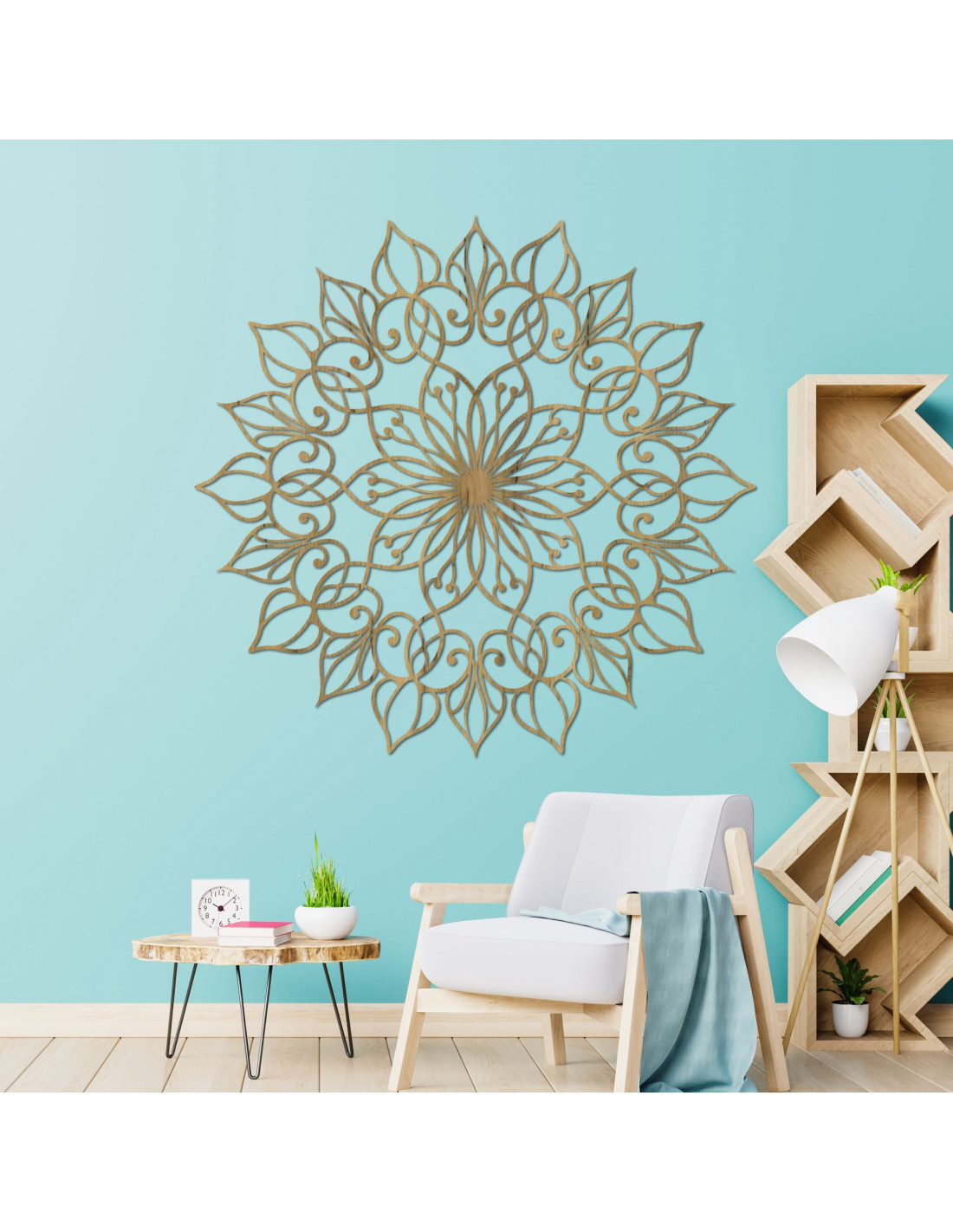 Seine goldene Farbe zieht sofort die Blicke auf sich und schafft eine luxuriöse Atmosphäre , die den Raum bereichert. Das Mandala symbolisiert Harmonie und Ausgewogenheit und fördert Ruhe und Meditation.