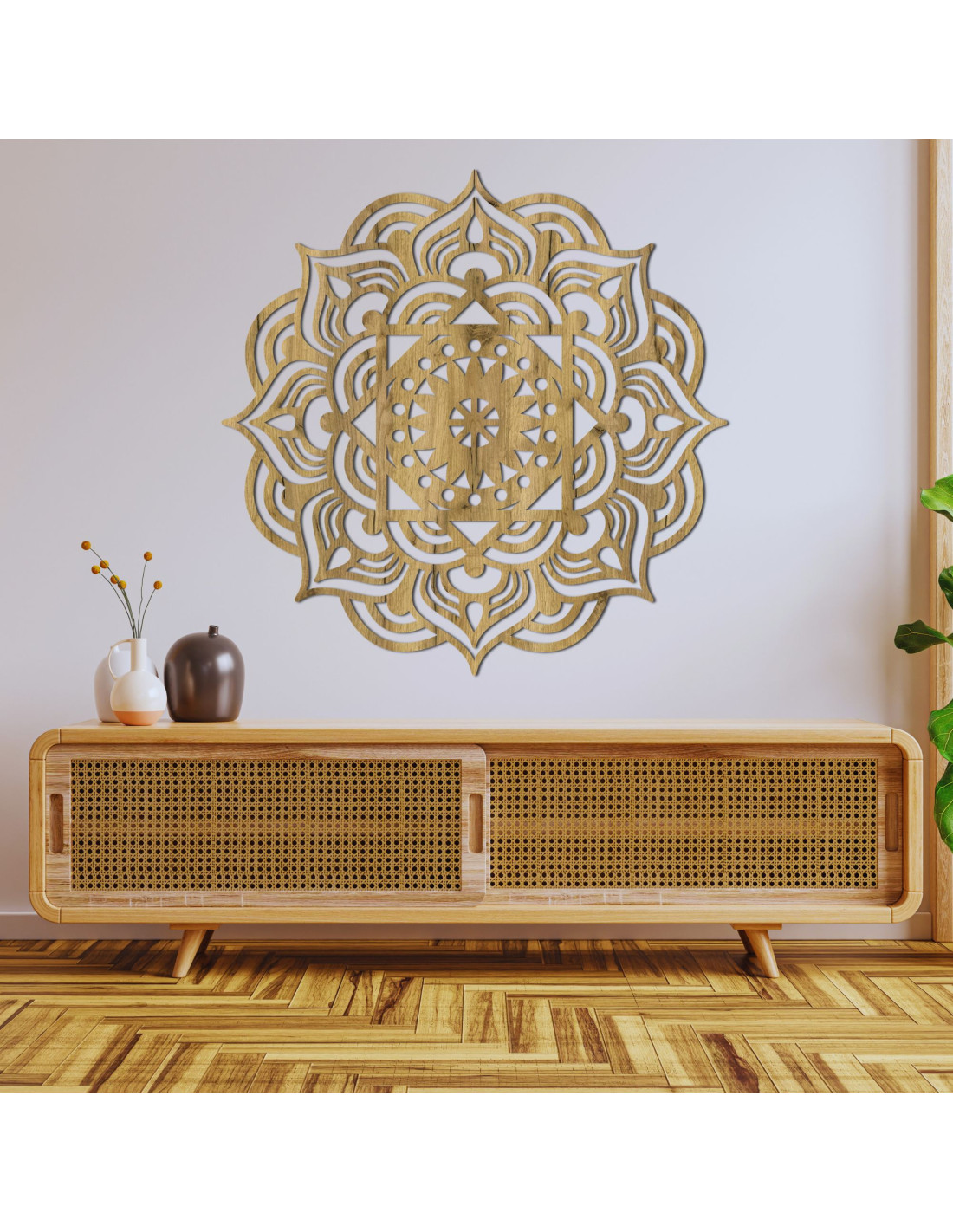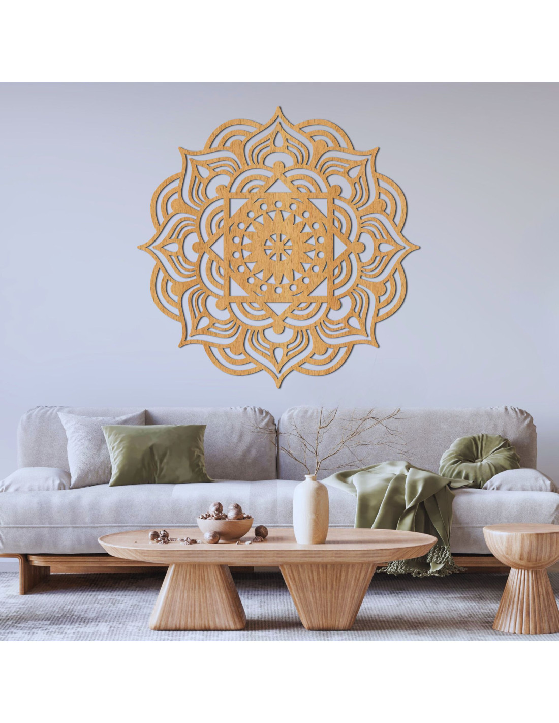 Die sorgfältig gearbeiteten, von der Natur inspirierten Details verleihen dem Raum eine friedvolle und harmonische Atmosphäre . Das Mandala fügt sich perfekt in jedes Interieur ein und verleiht ihm Stil und einen einzigartigen Charakter. Es ist nicht nur eine gewöhnliche Dekoration – dieses Mandala ist ein Symbol für Schönheit und positive Energie , das Ihr Zuhause in einen Ort voller Harmonie und Ästhetik verwandelt.