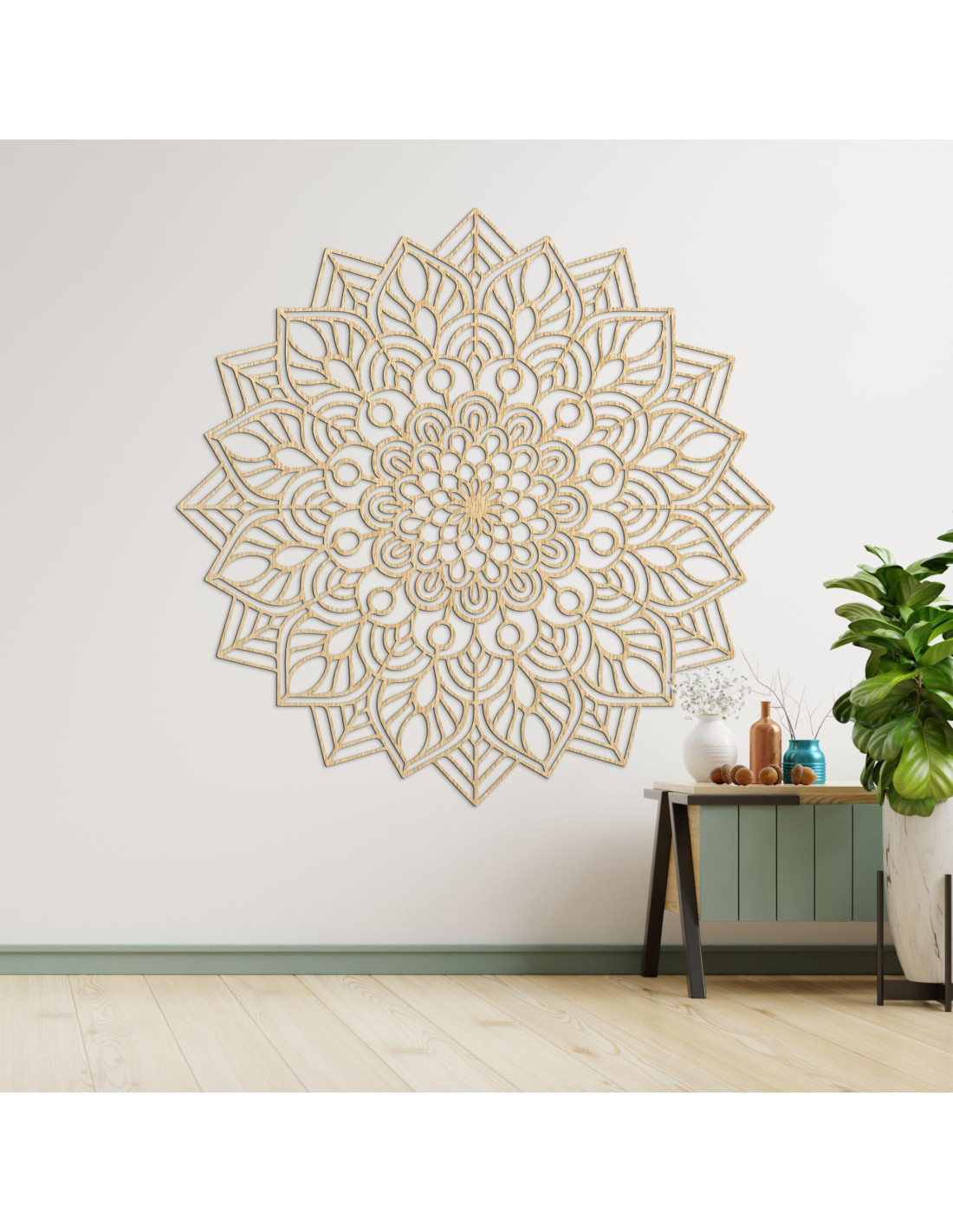 Dieses elegante Wandmandala aus Holz vereint präzise Handwerkskunst und harmonisches Design. Seine fein gearbeitete geometrische Struktur wirkt wie visuelle Poesie – Schichten von Formen, die zu einem ausgewogenen Ganzen verschmelzen.