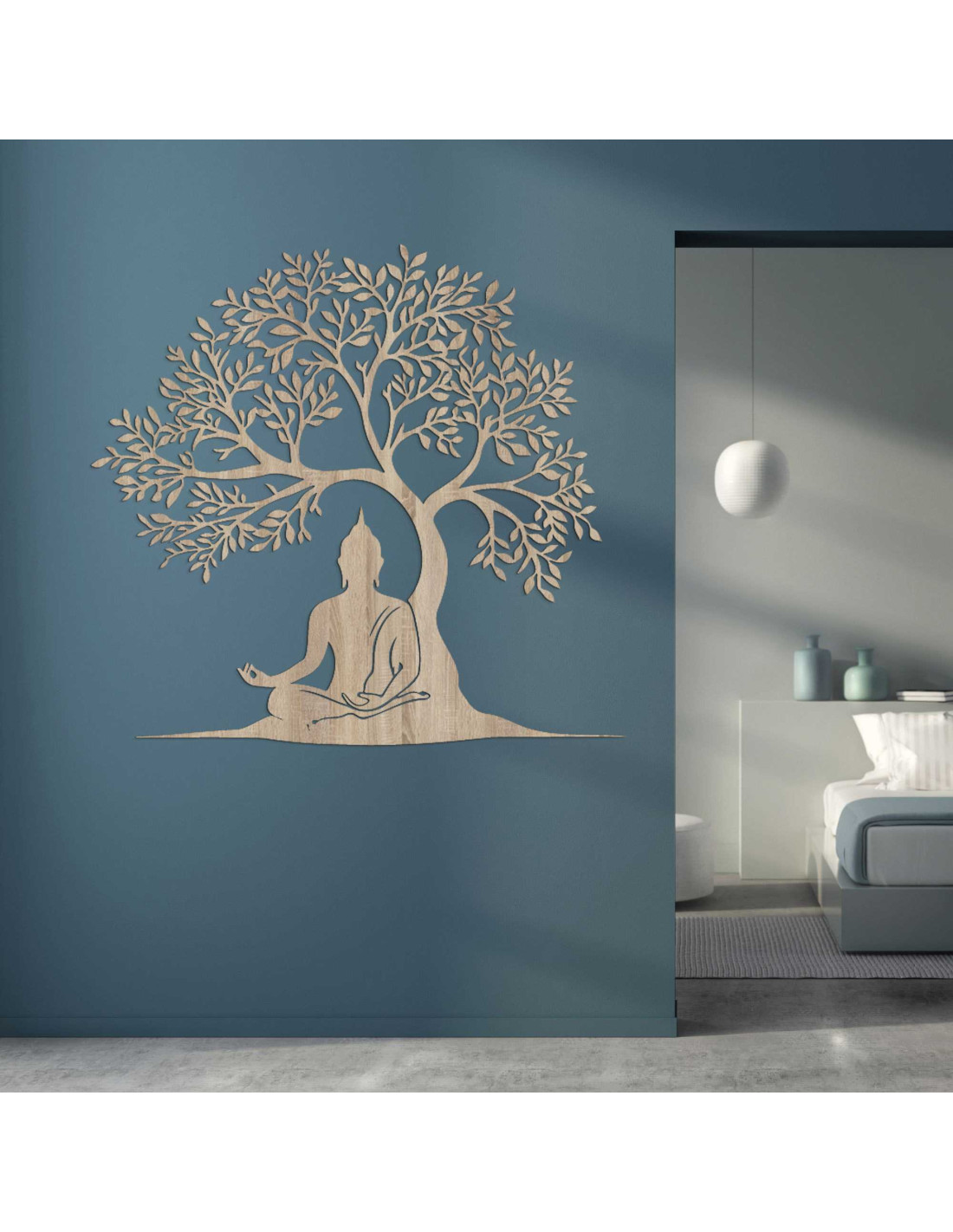 Holzbild des Lebensbaums und Buddha - MOTERO