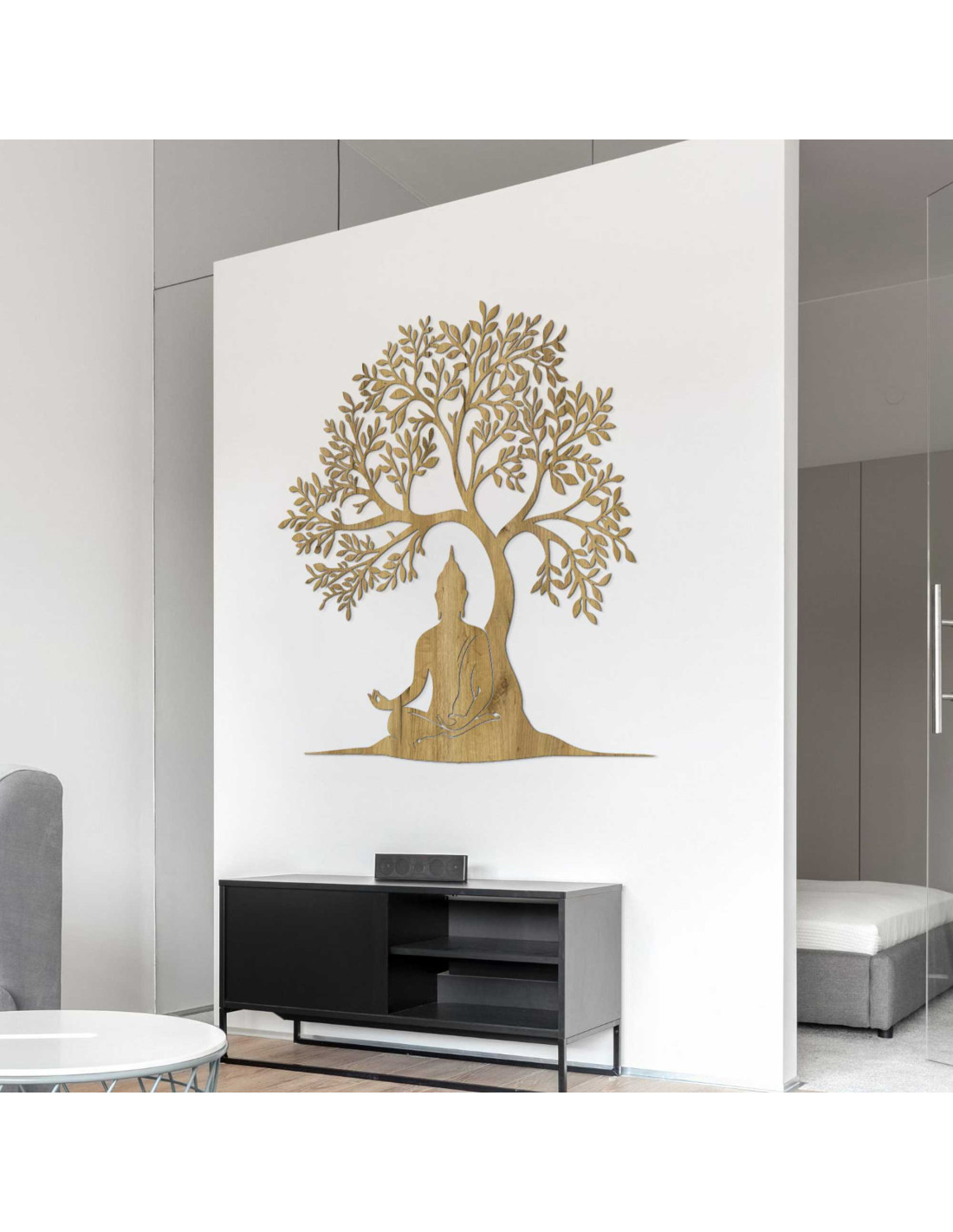 Holzbild des Lebensbaums und Buddha - MOTERO
