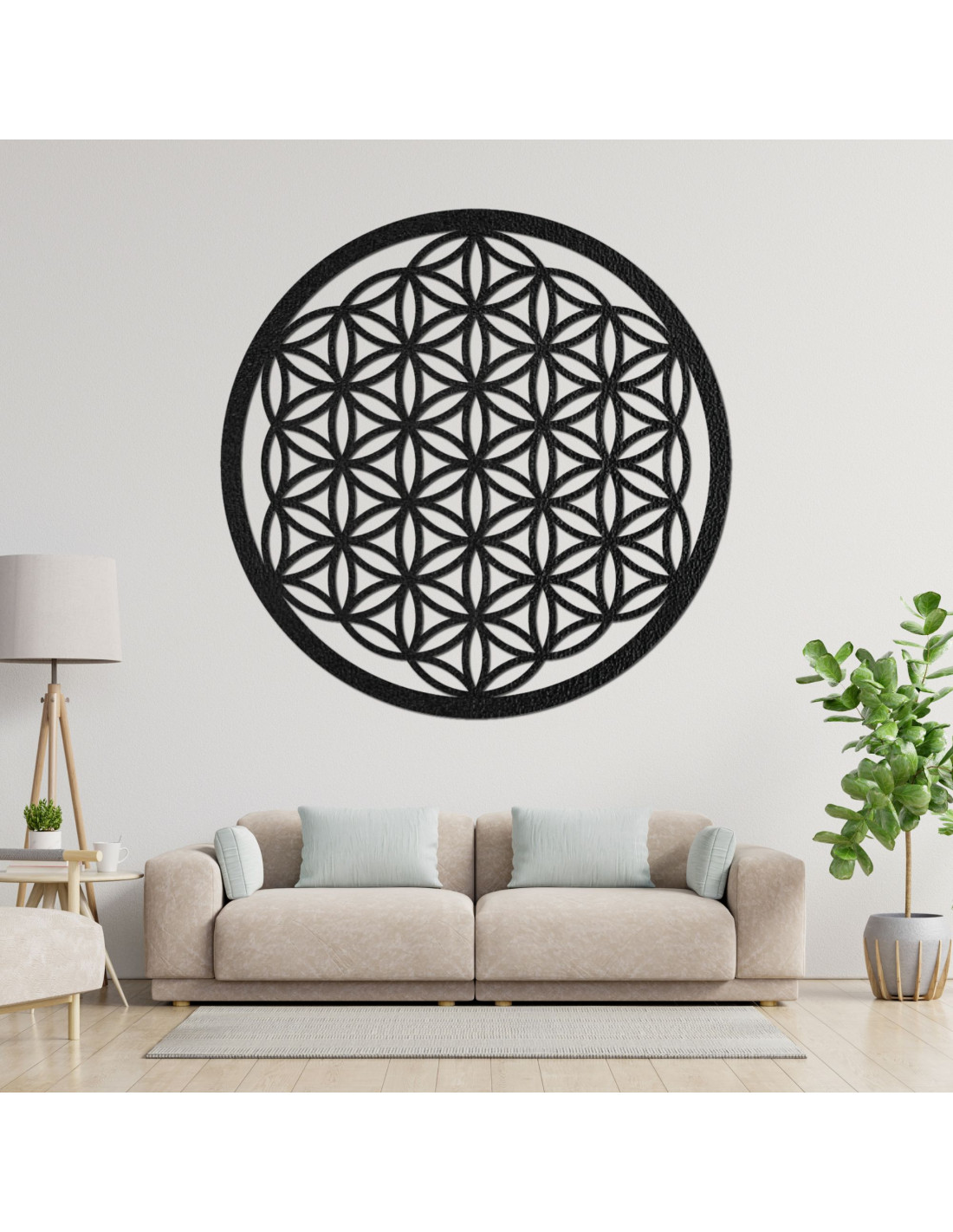 Das Design dieser Mandala ist von der uralten Lebensblume inspiriert, die in verschiedenen Kulturen zu finden ist und die grundlegenden Prinzipien des Universums und des Lebens repräsentiert. Ihr wird die Fähigkeit zugeschrieben, die Energie eines Raumes zu verbessern und inneren Frieden zu fördern. Die Lebensblume symbolisiert Harmonie, Einheit und die Verbundenheit alles dessen, was uns umgibt .