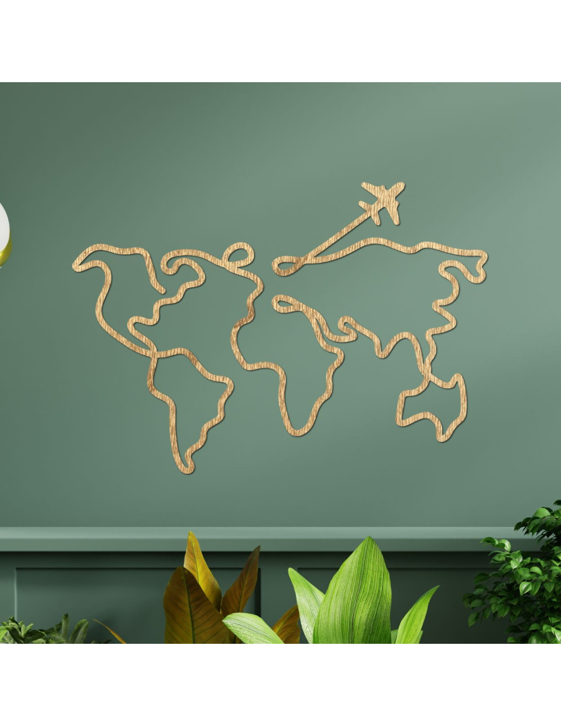 Moderne Weltkarte aus Holz mit Flugzeug für Reiseliebhaber