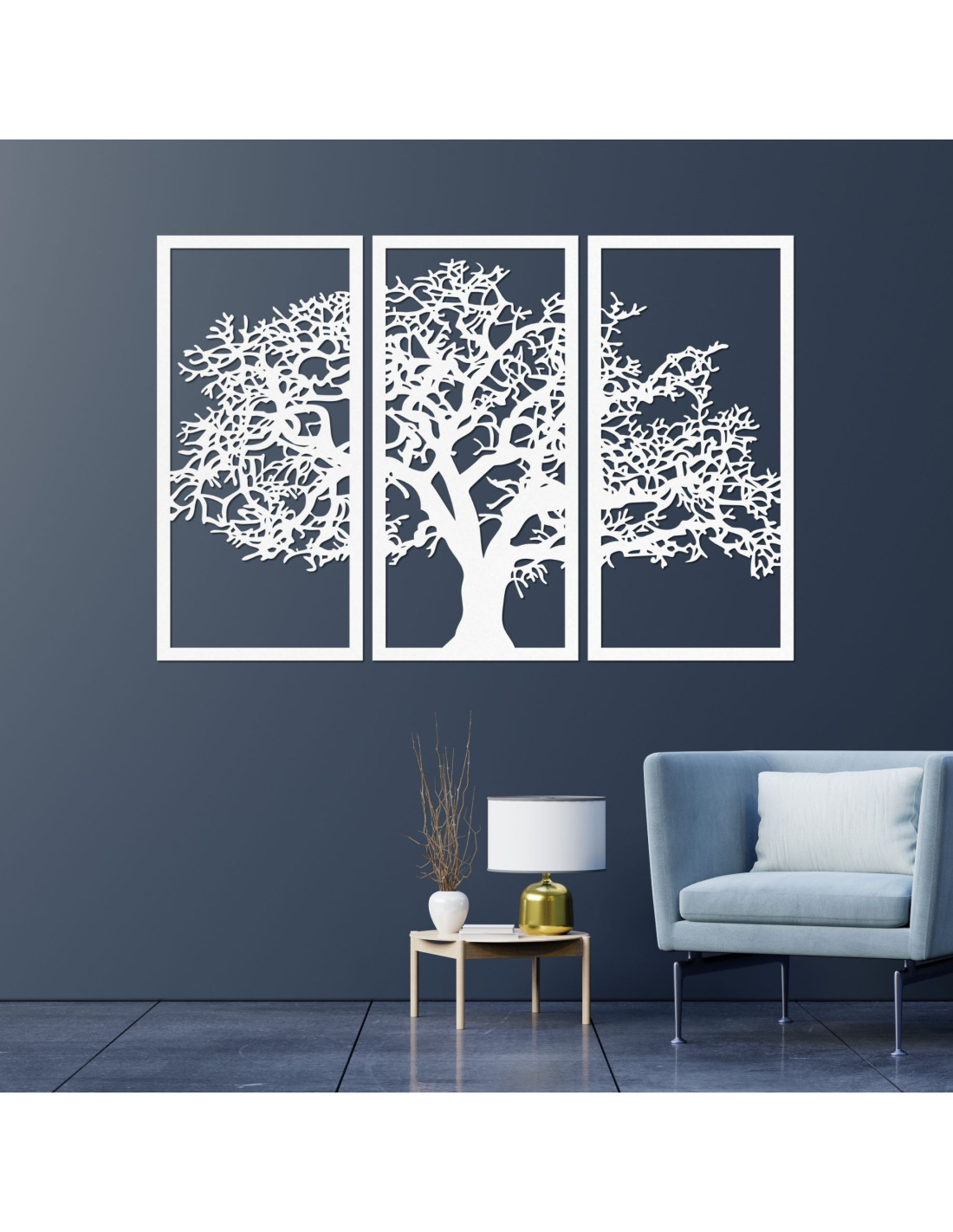 Entdecken Sie unser dreiteiliges Gemälde mit Baum- und Zweigmotiv – die perfekte Kombination aus modernem Design und Eleganz für Ihre Inneneinrichtung.