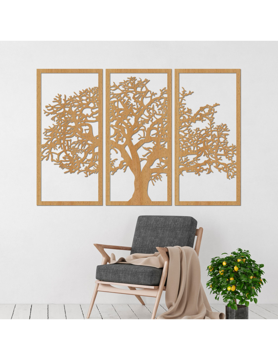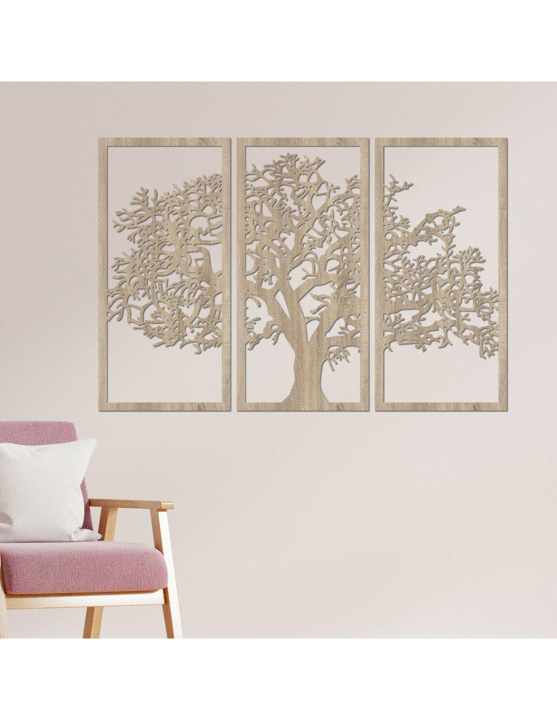Wandbild aus Holz „Lebensbaum“, 3-teiliges Set | SKOMBER