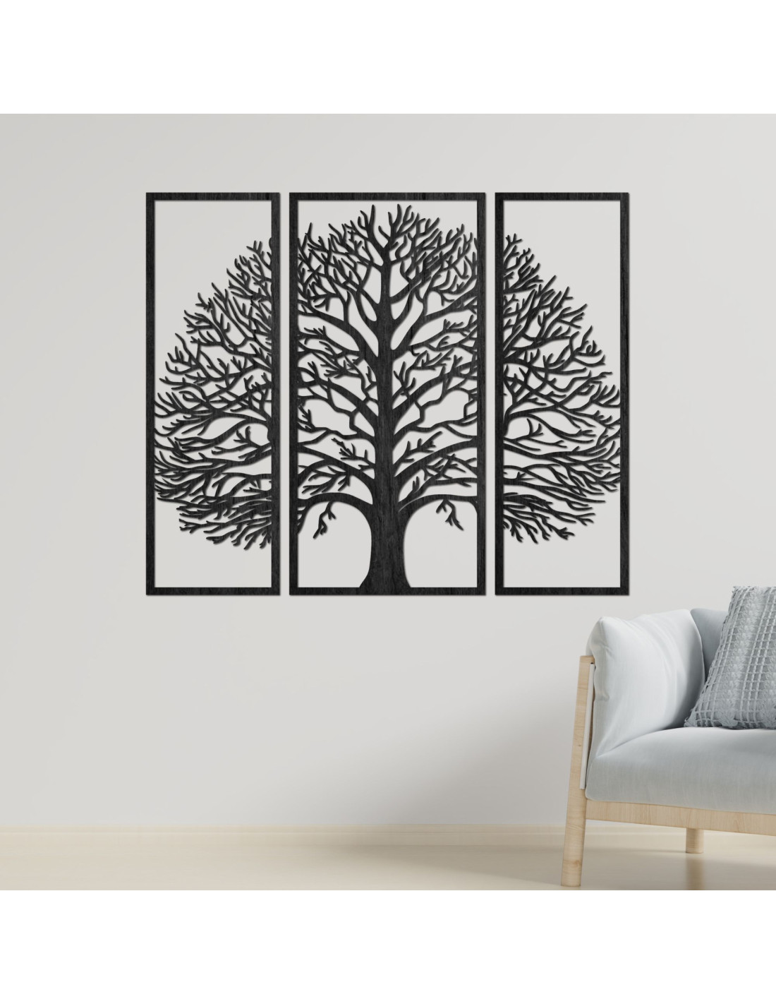 Lebensbaum aus Holz: Eleganz in drei Paneelen (3-teiliges Set)