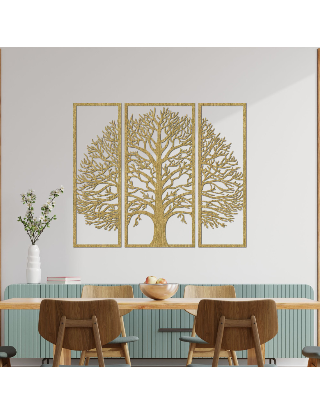 Lebensbaum aus Holz: Eleganz in drei Paneelen (3-teiliges Set)