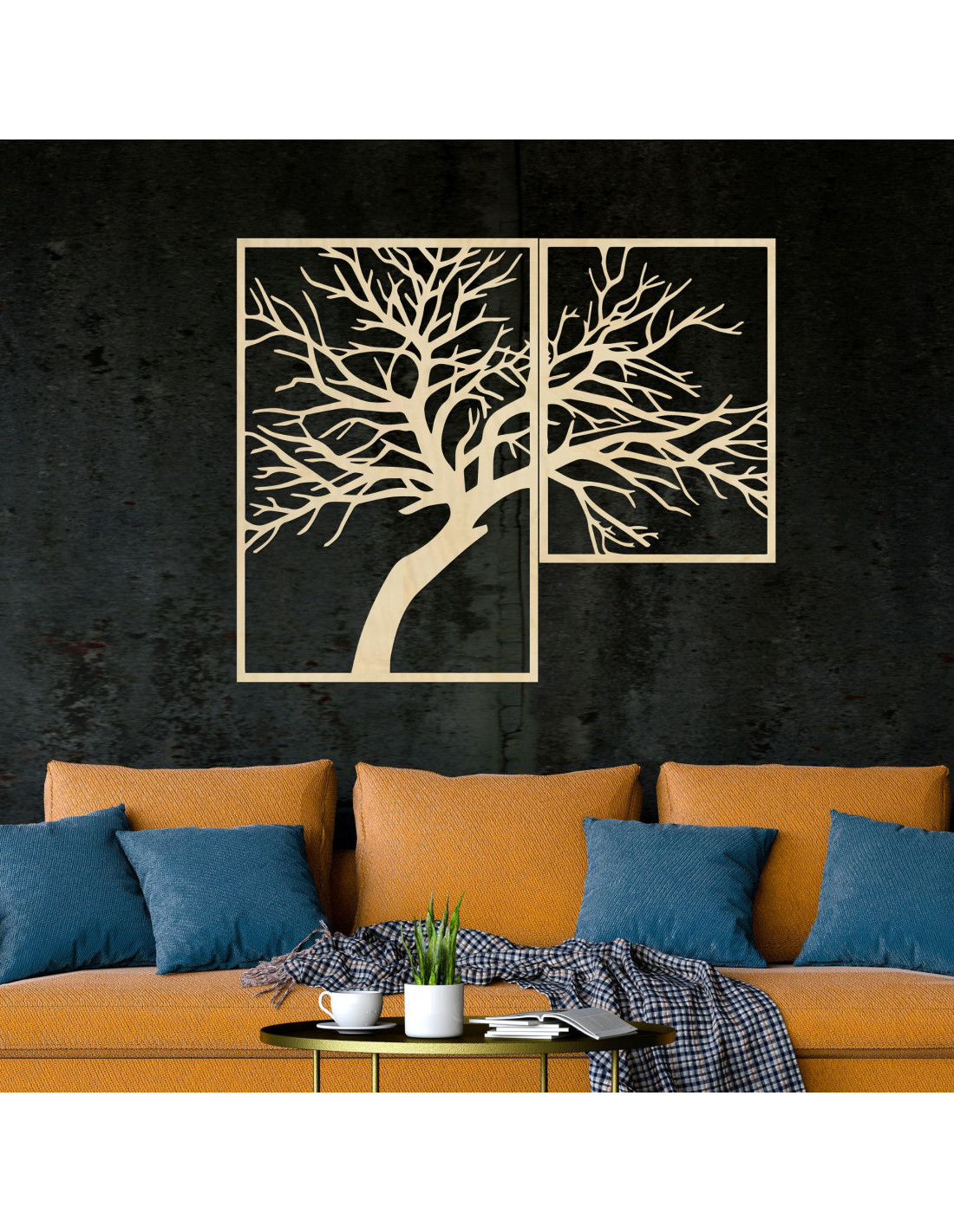 Zweiteiliges Holzbild „ Baum des Lebens“ – ein einzigartiges Kunstwerk, das natürliche Schönheit, Ausgewogenheit und modernes Design vereint.