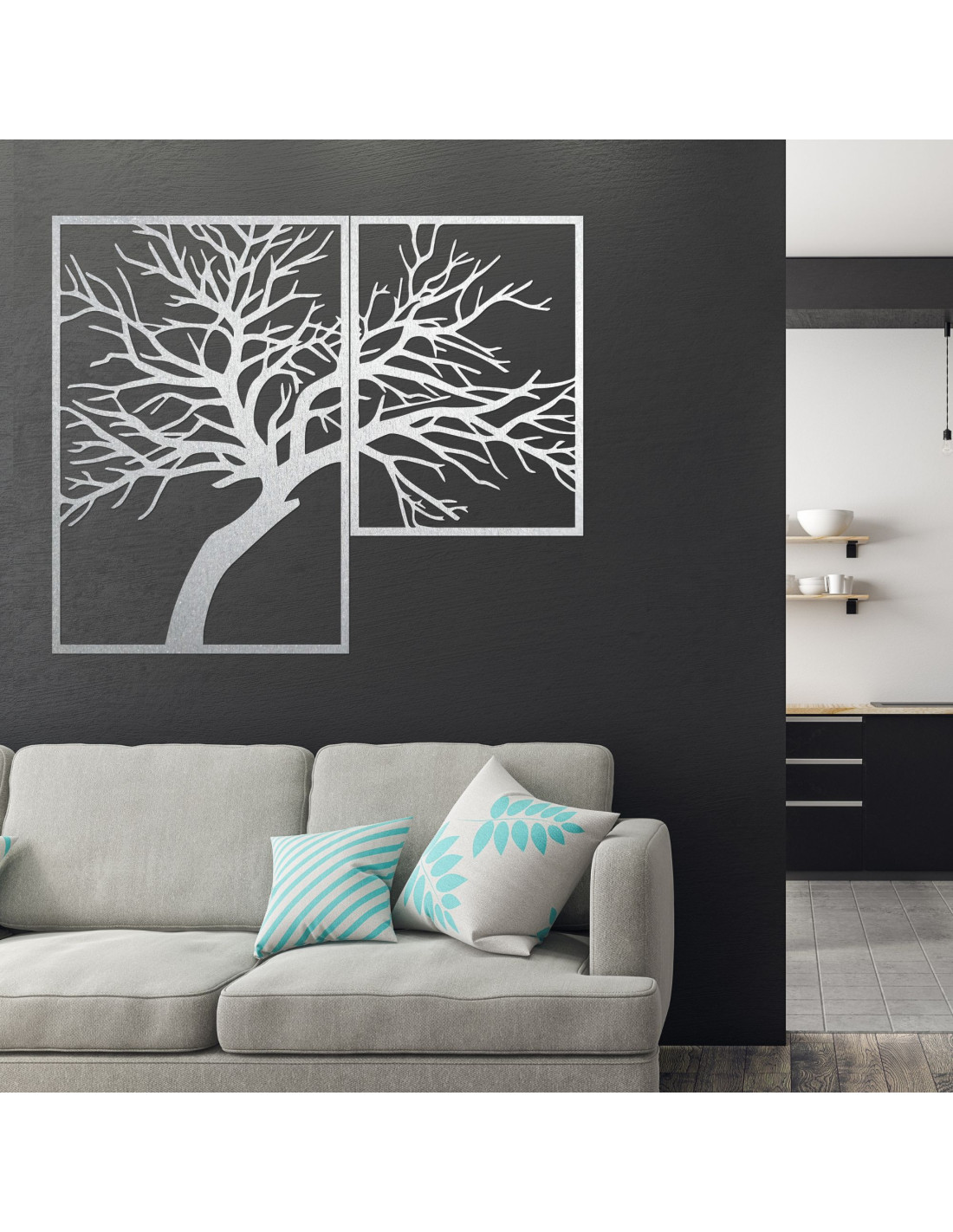 Das Motiv des Lebensbaums vermittelt Frieden, Stabilität und spirituelles Gleichgewicht und verleiht dem Raum eine Seele und eine außergewöhnliche Atmosphäre.