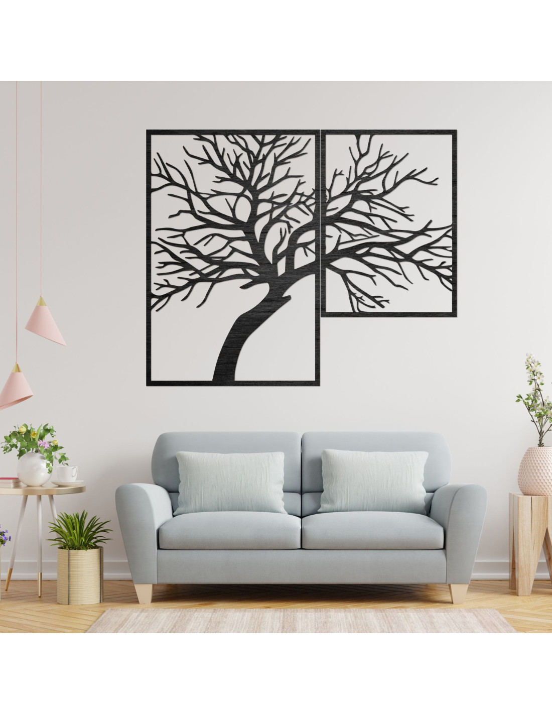 Zweiteiliges Holzbild „ Baum des Lebens“ – ein einzigartiges Kunstwerk, das natürliche Schönheit, Ausgewogenheit und modernes Design vereint.