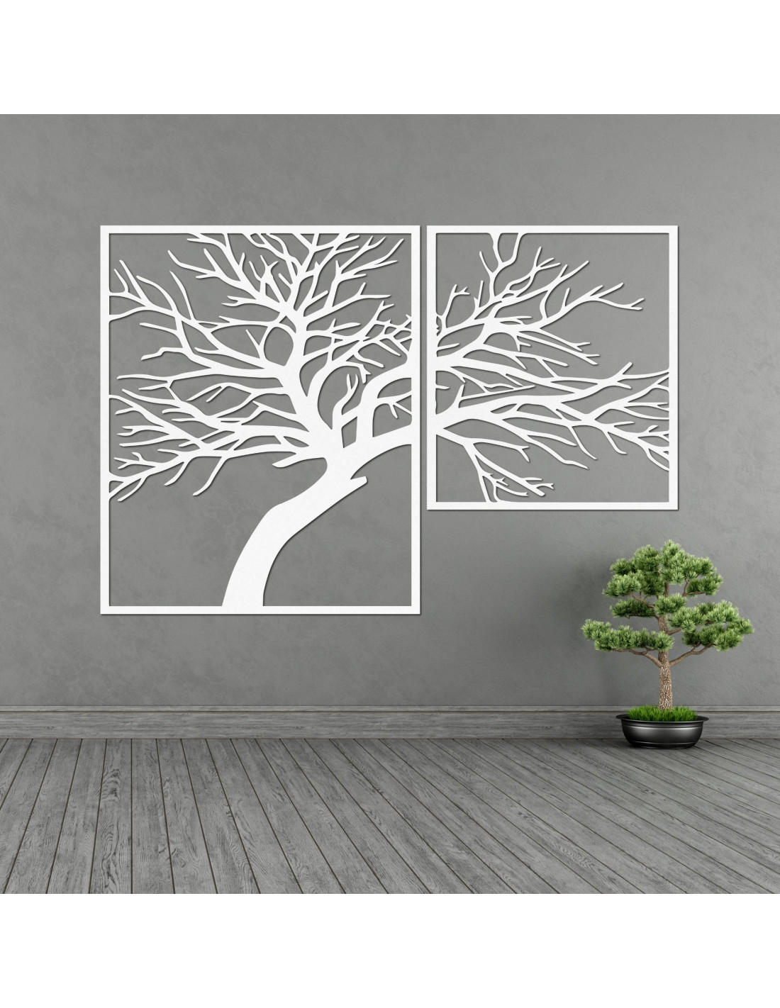 Zweiteiliges Holzbild „ Baum des Lebens“ – ein einzigartiges Kunstwerk, das natürliche Schönheit, Ausgewogenheit und modernes Design vereint.