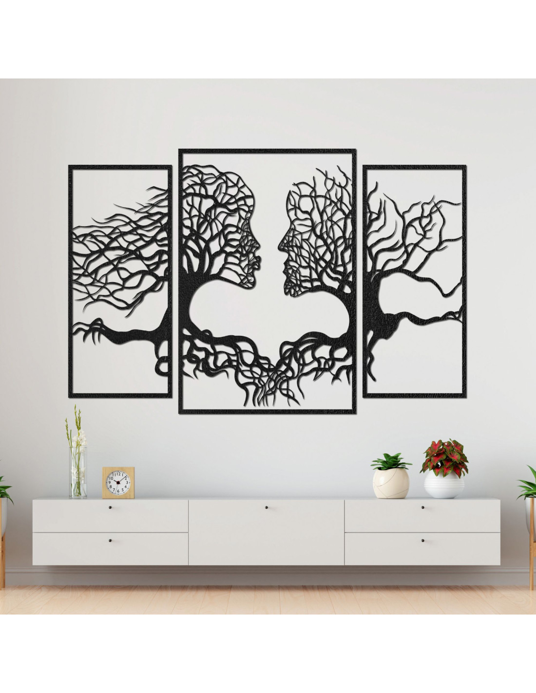 SentopDas dreiteilige Gemälde fängt die einzigartige Verbindung zwischen Mensch und Natur ein, in der Baumsilhouetten auf natürliche Weise mit menschlichen Gesichtern verschmelzen . Die feine Komposition erzeugt eine harmonische Wirkung und regt zur Reflexion über unser Verhältnis zur Natur und zueinander an.