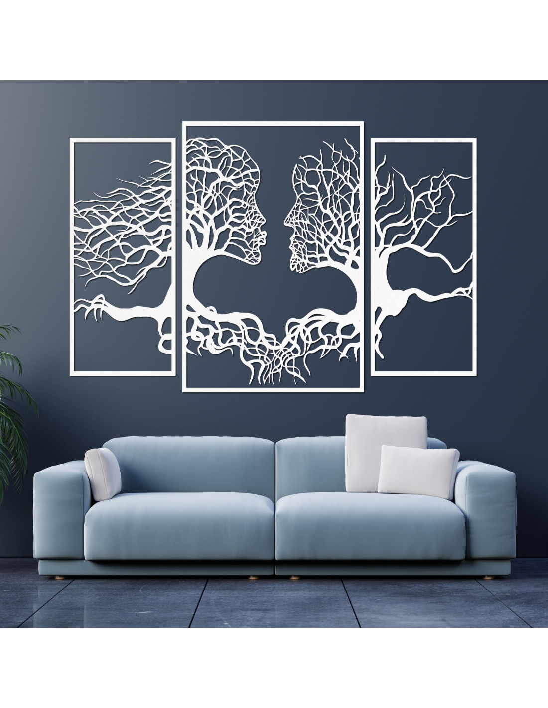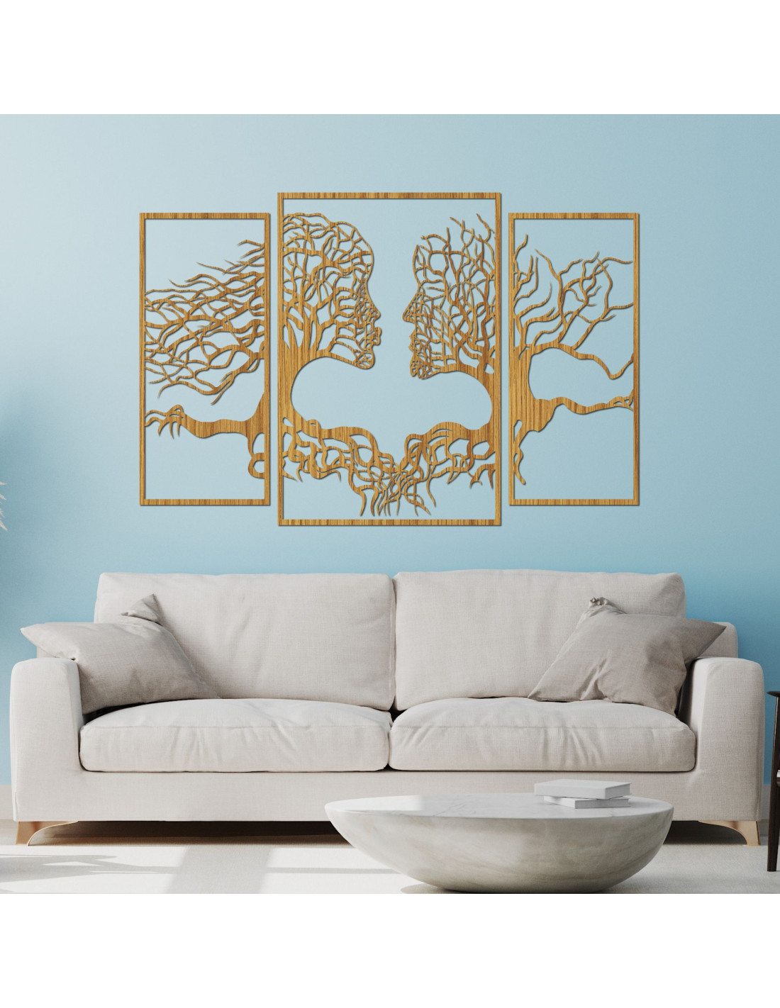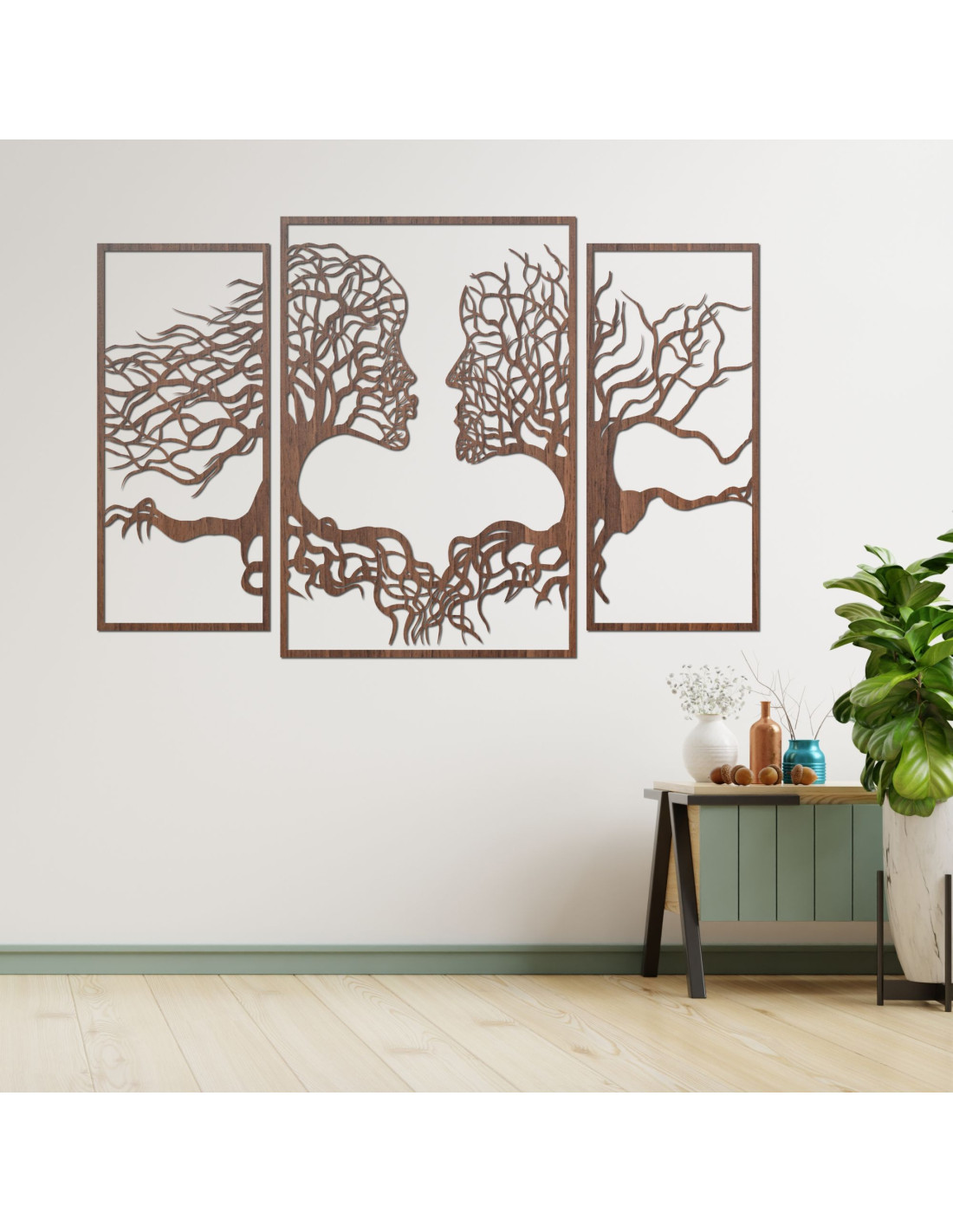 SentopDas dreiteilige Gemälde fängt die einzigartige Verbindung zwischen Mensch und Natur ein, in der Baumsilhouetten auf natürliche Weise mit menschlichen Gesichtern verschmelzen . Die feine Komposition erzeugt eine harmonische Wirkung und regt zur Reflexion über unser Verhältnis zur Natur und zueinander an.