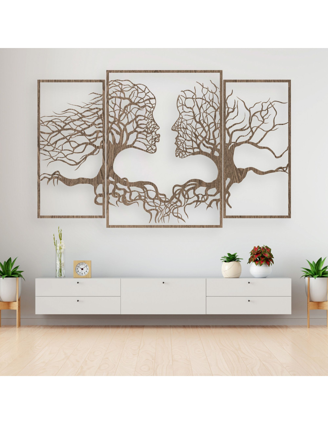 SentopDas dreiteilige Gemälde fängt die einzigartige Verbindung zwischen Mensch und Natur ein, in der Baumsilhouetten auf natürliche Weise mit menschlichen Gesichtern verschmelzen . Die feine Komposition erzeugt eine harmonische Wirkung und regt zur Reflexion über unser Verhältnis zur Natur und zueinander an.