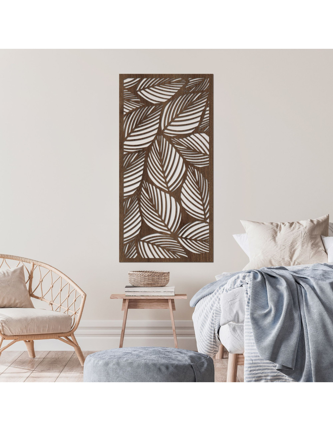 Holzdekorationen mit Blattmuster symbolisieren Wachstum, Frieden und die Verbundenheit mit der Natur.