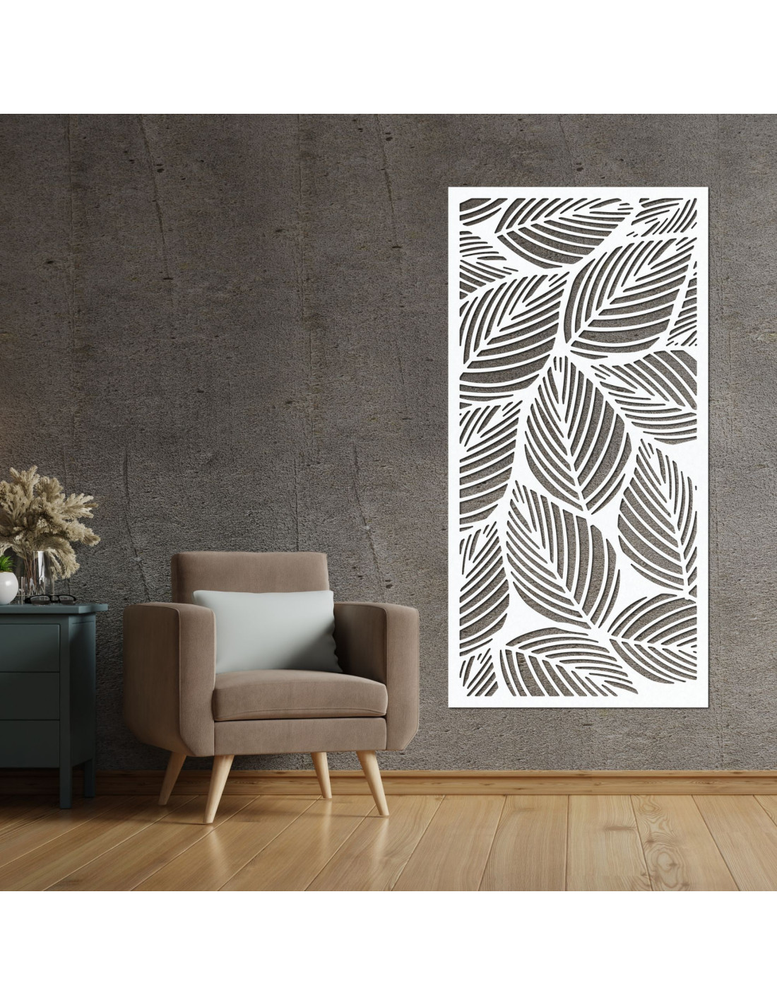 Ein Designbild mit Blattmotiv bringt einen Hauch von Natur und Leichtigkeit in den Innenraum.