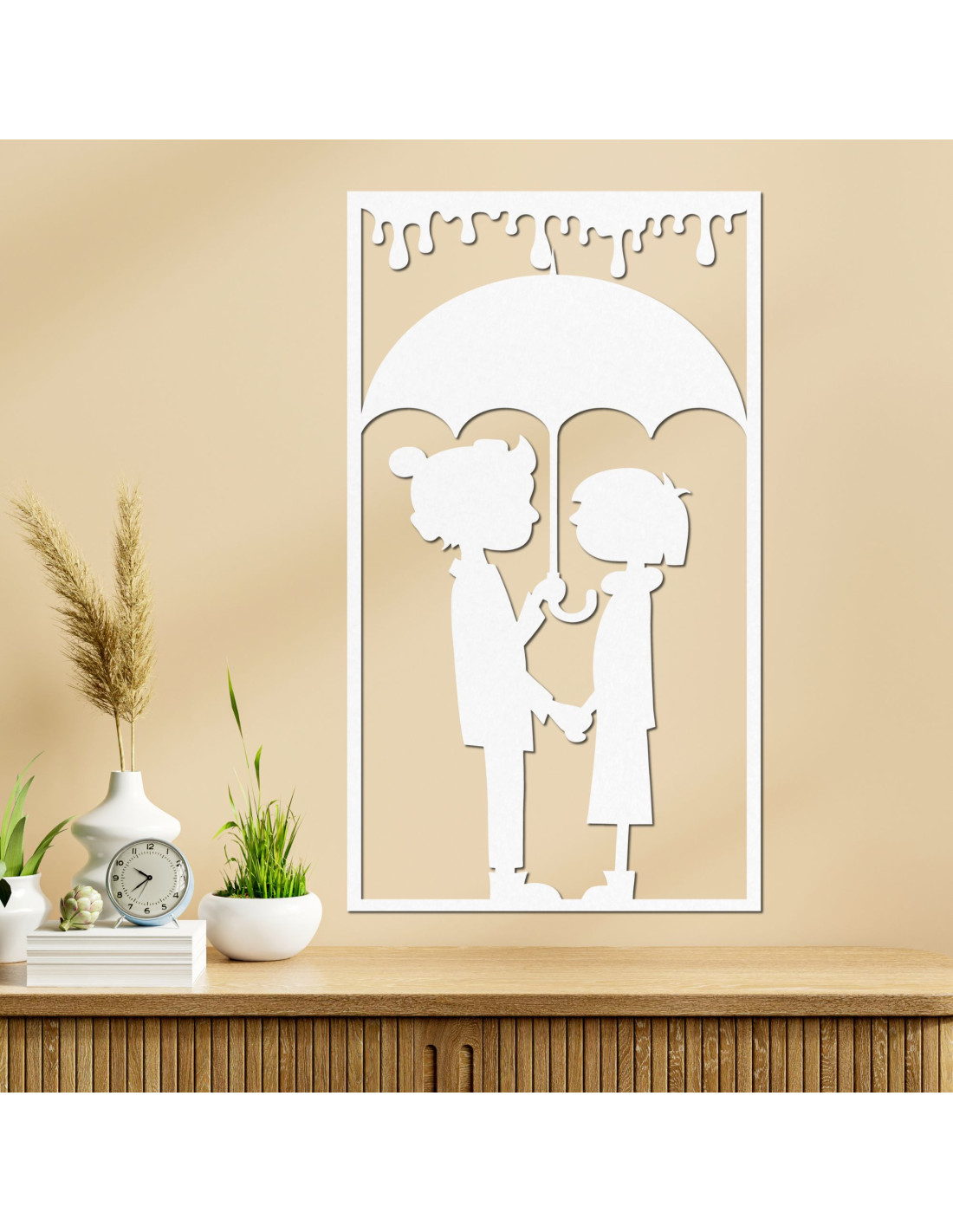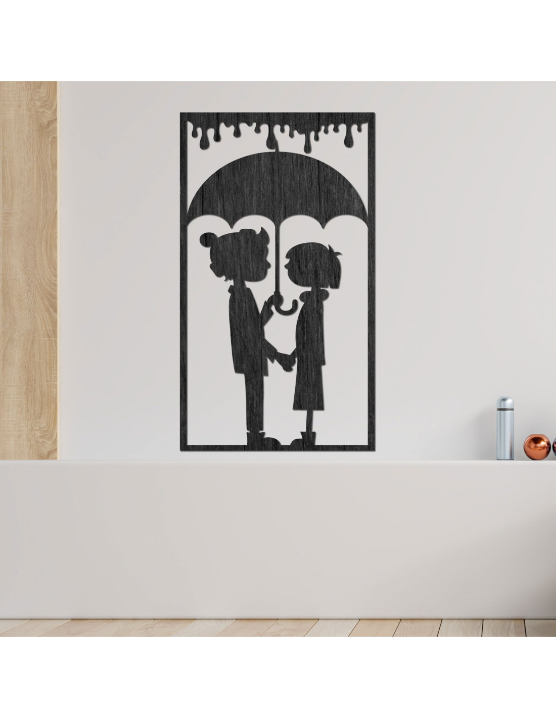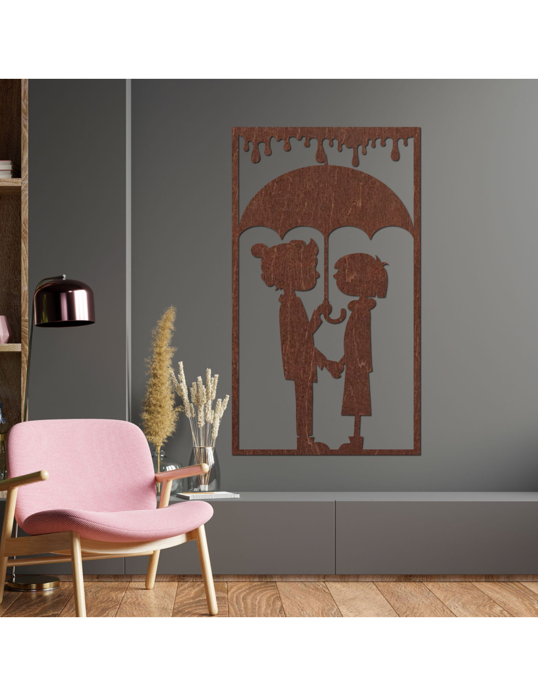 Die elegante Holzdekoration mit dem Motiv von Figuren unter einem Regenschirm verbindet Schlichtheit mit einer starken emotionalen Botschaft. Diese Wanddekoration ist geeignet, um Gefühle wie Liebe, Unterstützung oder Zusammengehörigkeit auszudrücken. Außerdem bringt das natürliche Material ein Gefühl von Wärme und Authentizität in den Raum. Sie eignet sich sowohl für moderne als auch für rustikale Innenräume, wo sie eine harmonische Atmosphäre schafft.