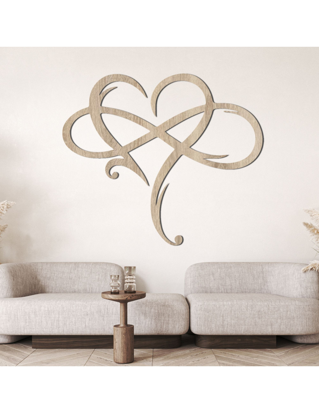 Das Bild in Form eines unendlichen Herzens, präzise gefertigt aus hochwertigem Holz , stellt ein Symbol ewiger Liebe und starker Verbundenheit dar.