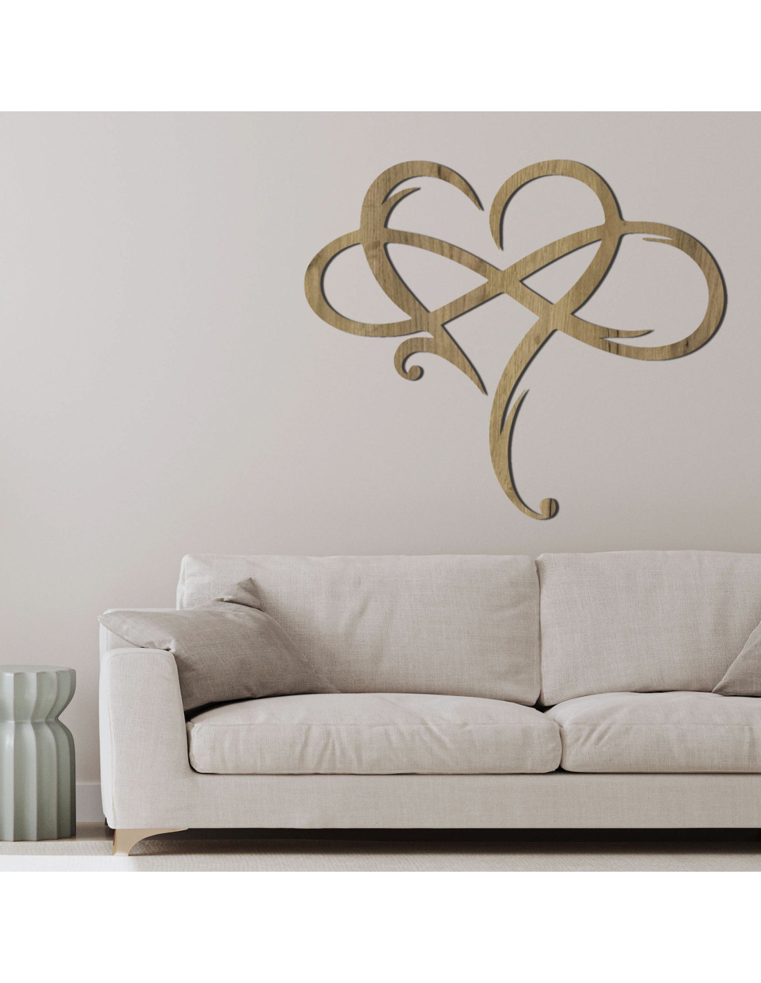Das Bild in Form eines unendlichen Herzens, präzise gefertigt aus hochwertigem Holz , stellt ein Symbol ewiger Liebe und starker Verbundenheit dar.