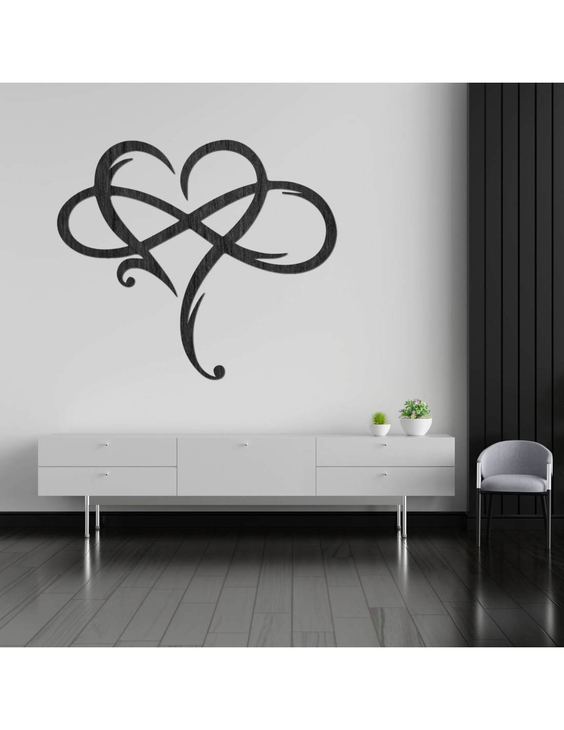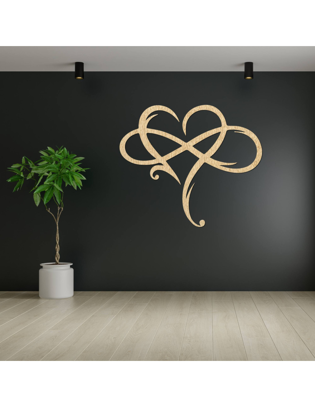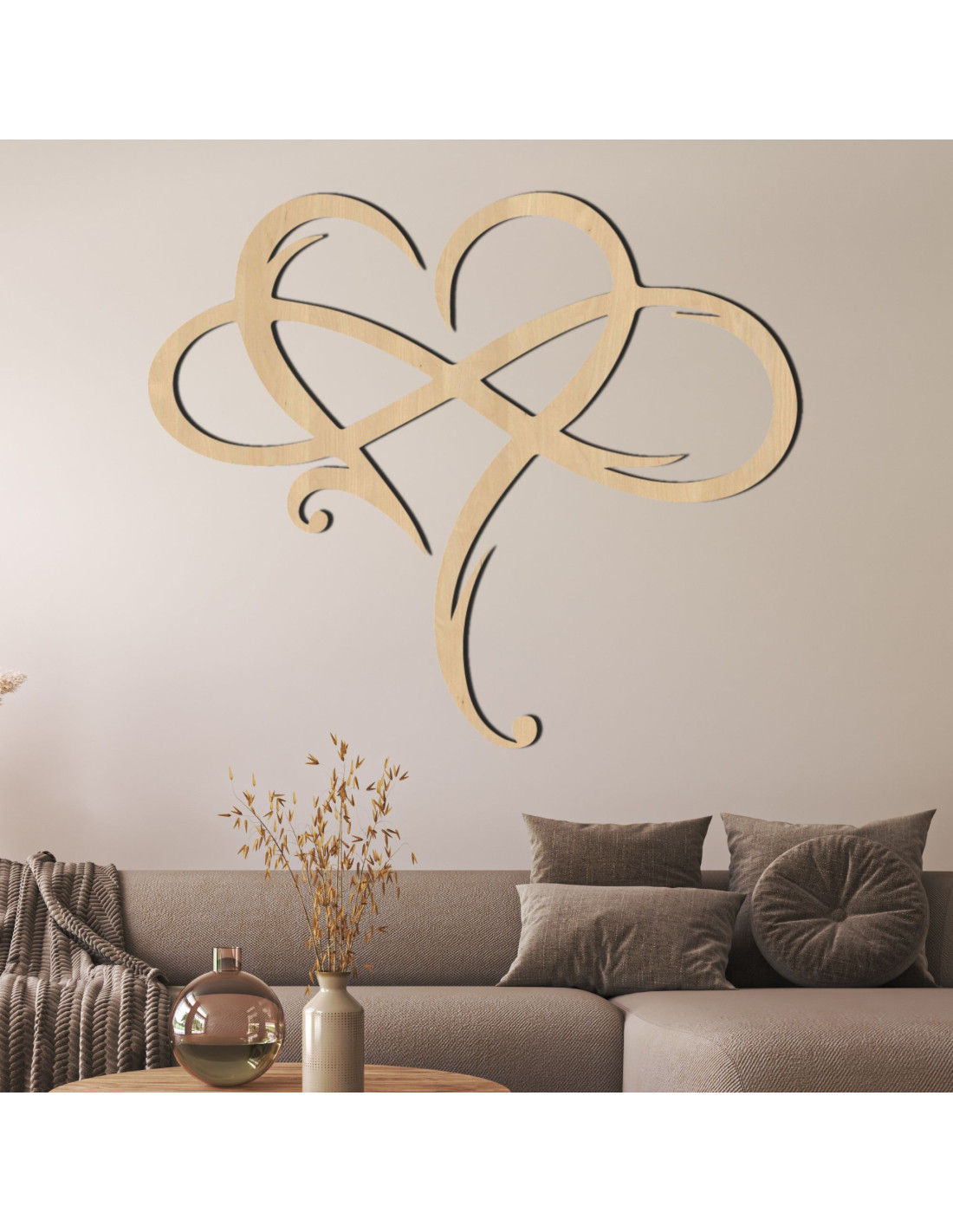 Das Bild in Form eines unendlichen Herzens, präzise gefertigt aus hochwertigem Holz , stellt ein Symbol ewiger Liebe und starker Verbundenheit dar.