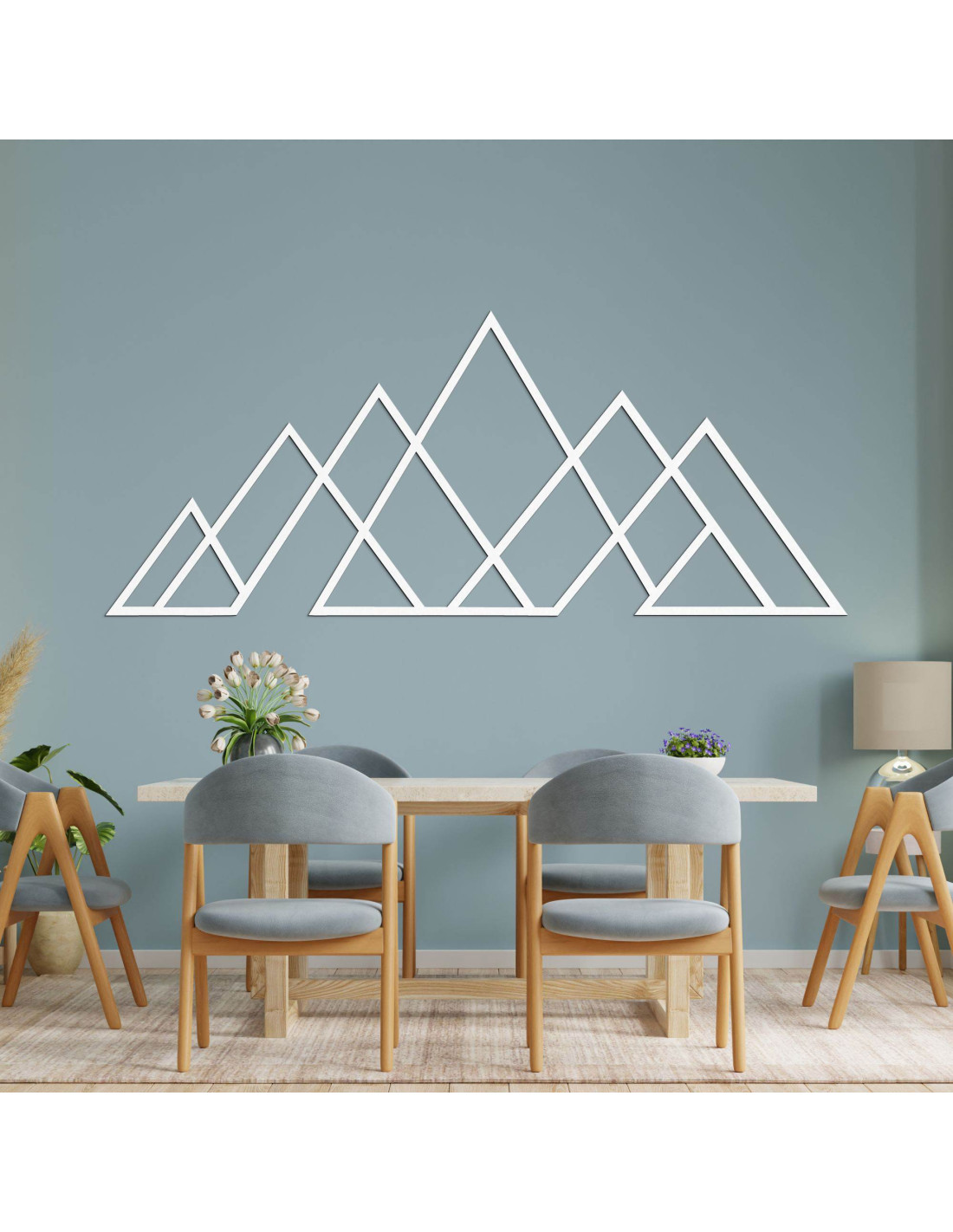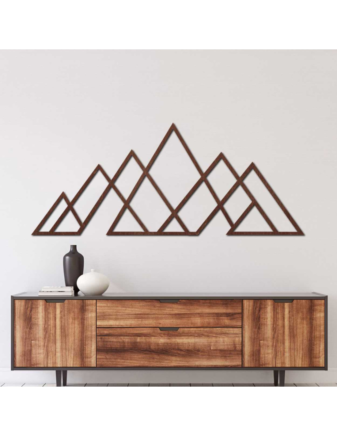 Geometrisches Bergmotiv – Wanddekoration aus Holz im modernen Stil für Natur- und Minimalismusliebhaber.