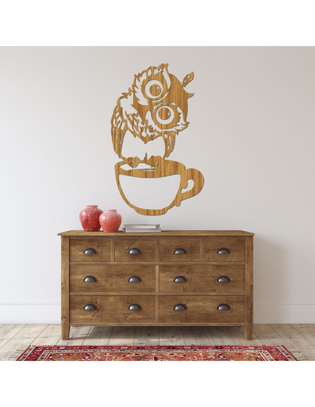Niedliches Holzbild einer Eule in einer Tasse | Eule