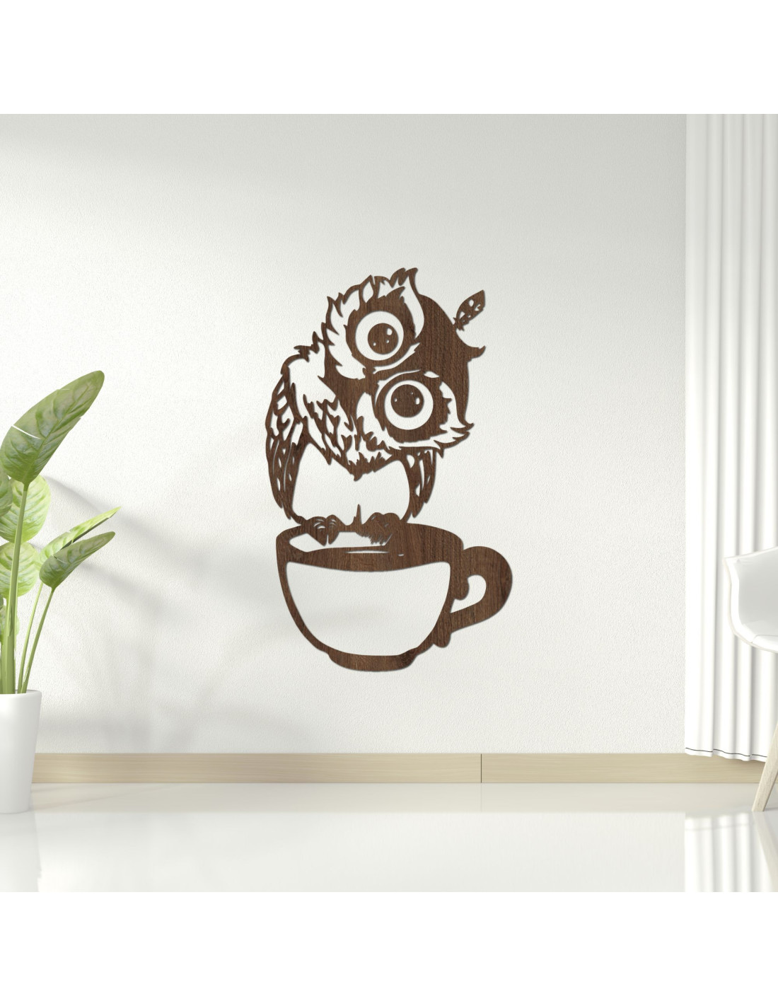 Niedliches Holzbild einer Eule in einer Tasse | Eule