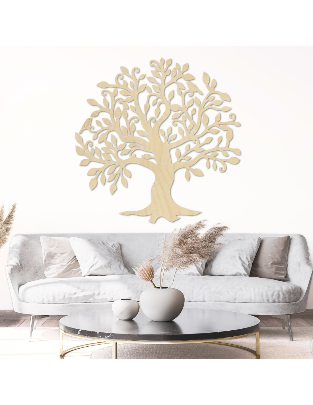 Die hölzerne Wanddekoration in Form eines Lebensbaums ist ein stilvolles und elegantes Accessoire, das jedes Interieur aufwertet.