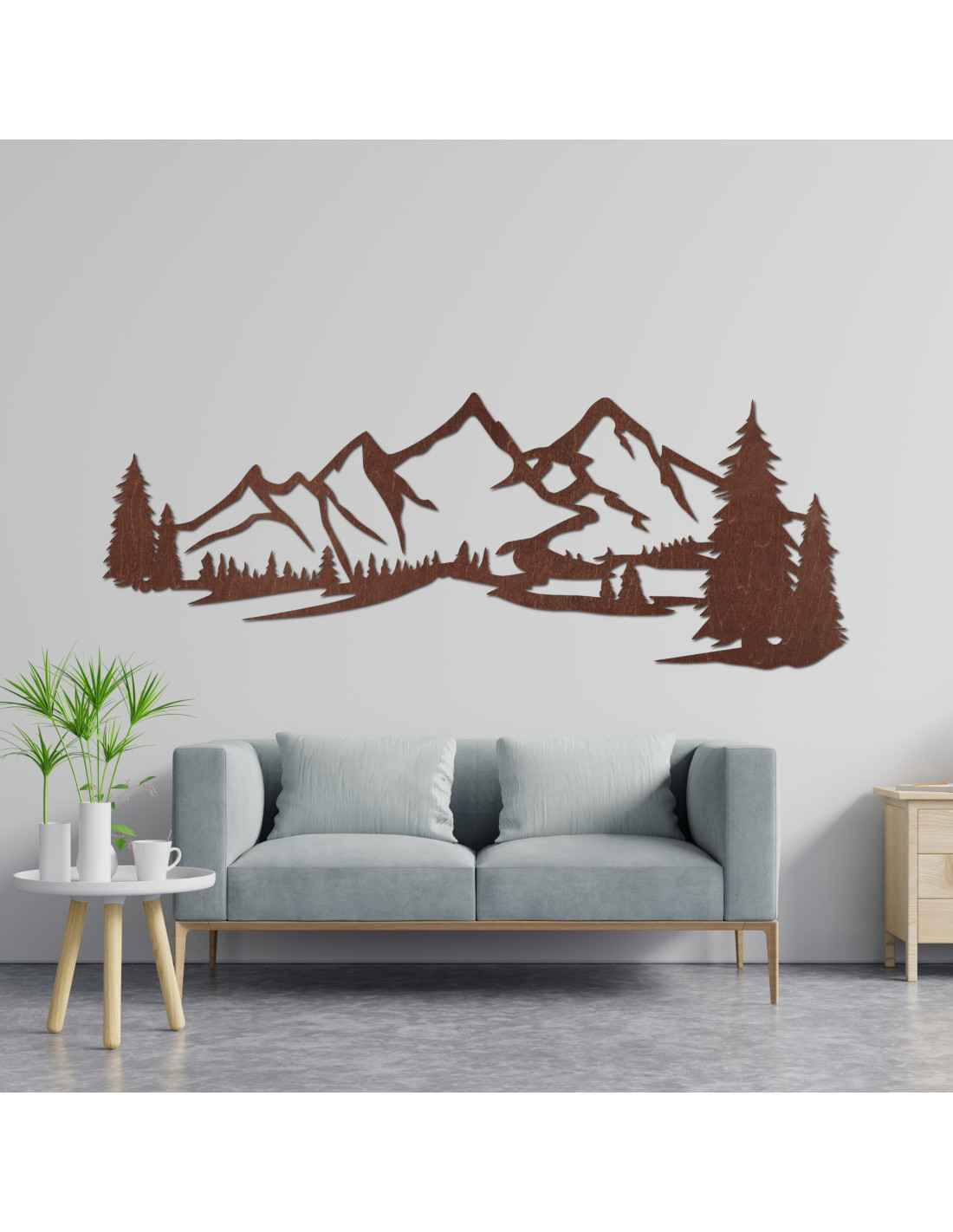 Die Holzdekoration „Berge und Wald“ ist ein einzigartiges Gestaltungselement, das durch seine detailreiche Laserbearbeitung und sein natürliches Aussehen sofort die Aufmerksamkeit auf sich zieht.
